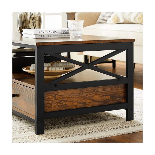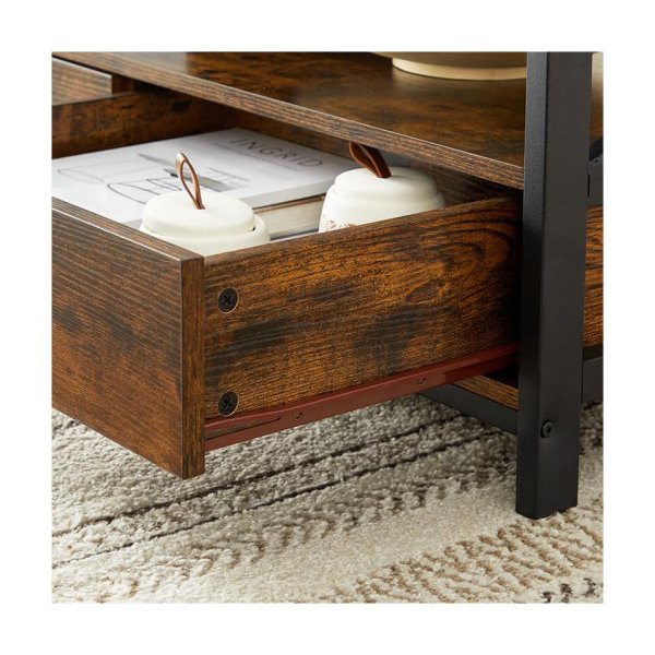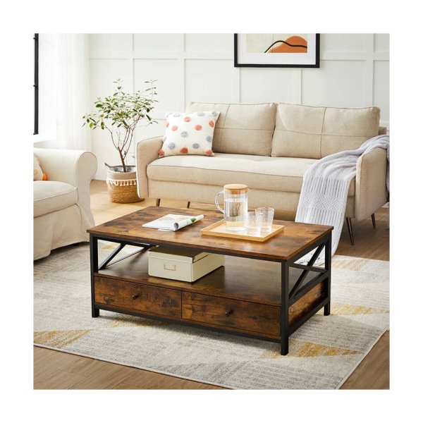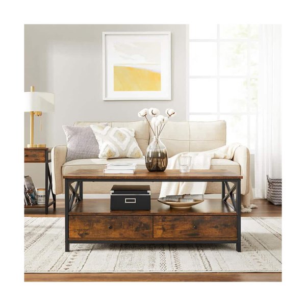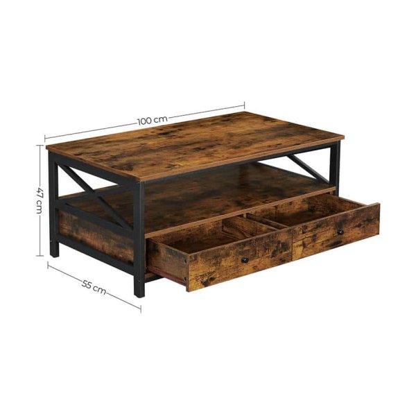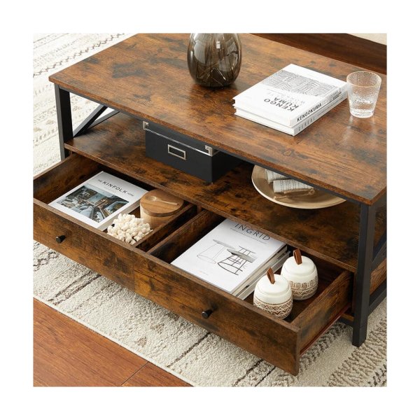 Salontafel Met Laden, Salontafel, woonkamertafel met laden, X vormige schragen, industrieel ontwerp, rustiek bruin