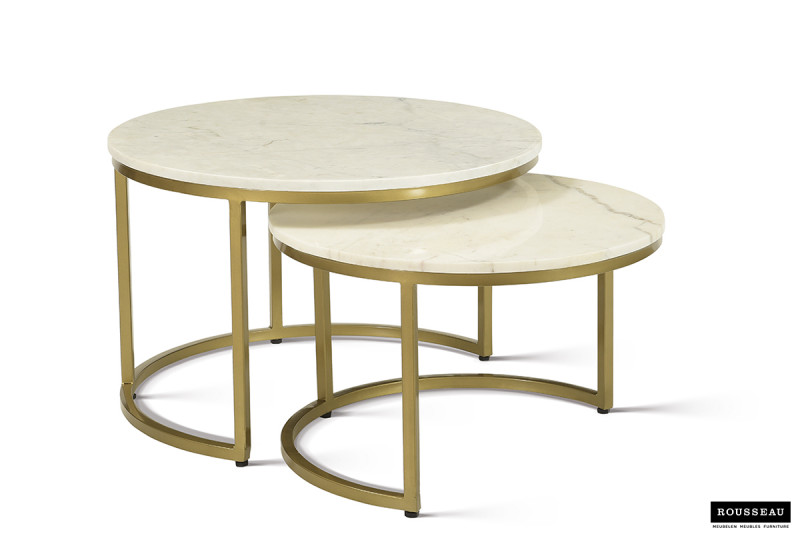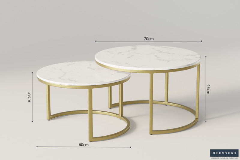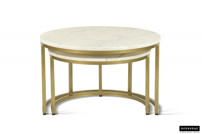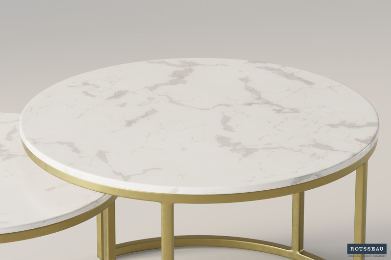 Salontafel ‘Nazaro’ 2-delig Wit marmer, Structuur metaal, blad wit marmer