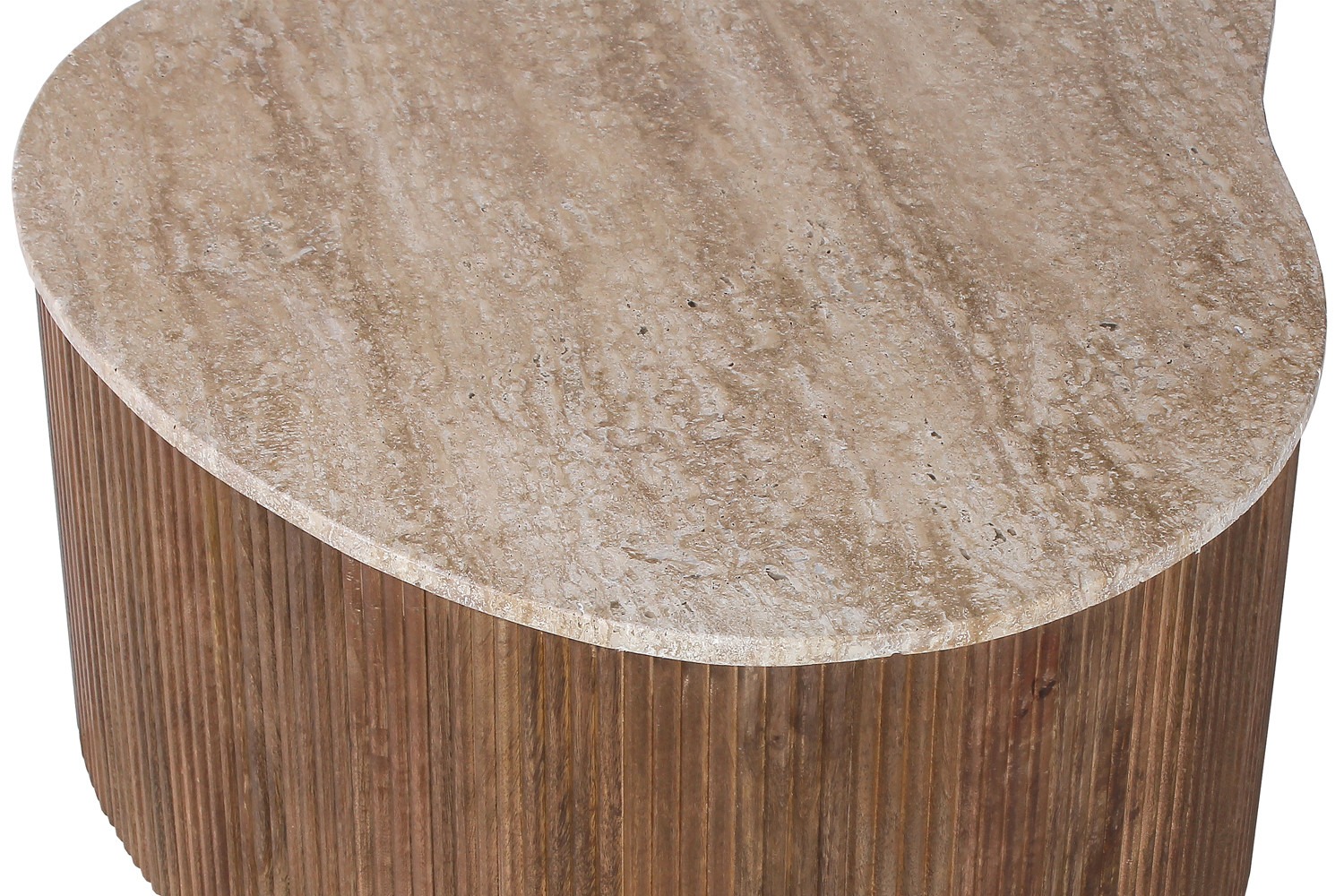 Prachtige salontafel ‘Paul’ van 83 cm gemaakt van mango hout met een travertin beige blad. De tafel heeft een afmeting van 83 x 72 x 34 cm en is 31. 5 inch lang.