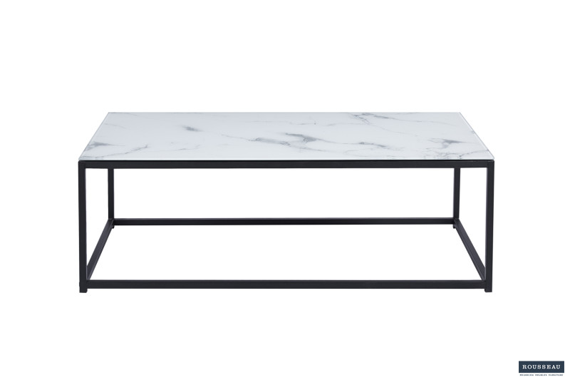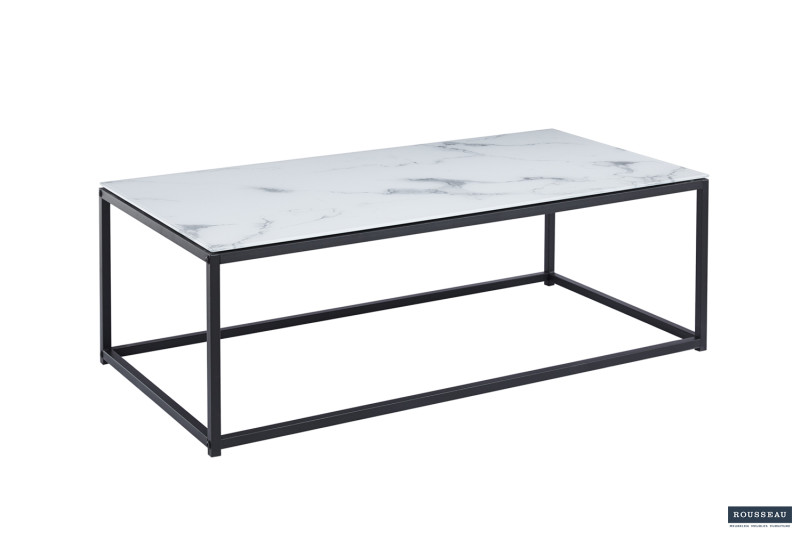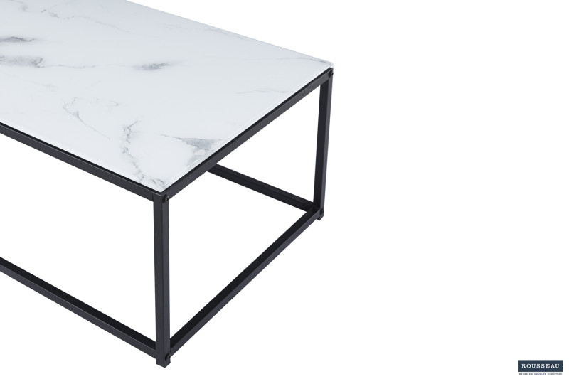 Salontafel ‘Tampa’ Decor Glas Marmer Wit, Structuur zandgevoel frame, blad papier + glas