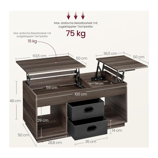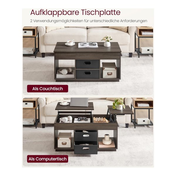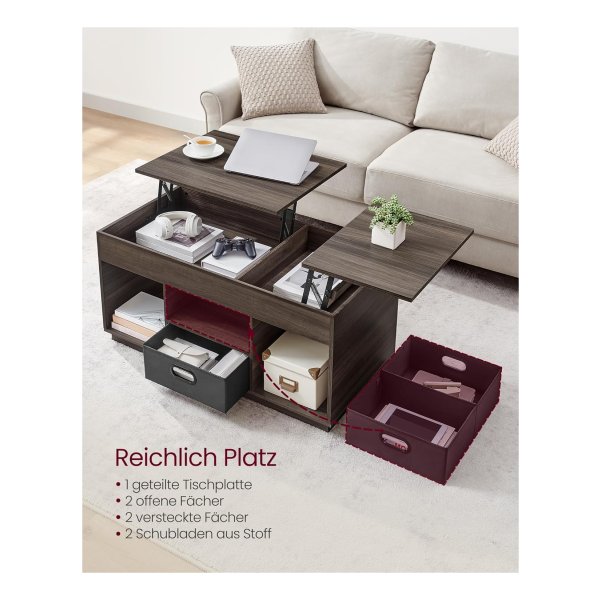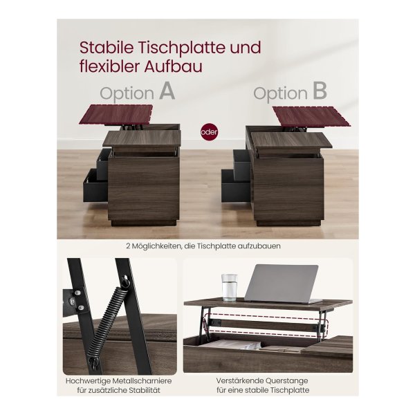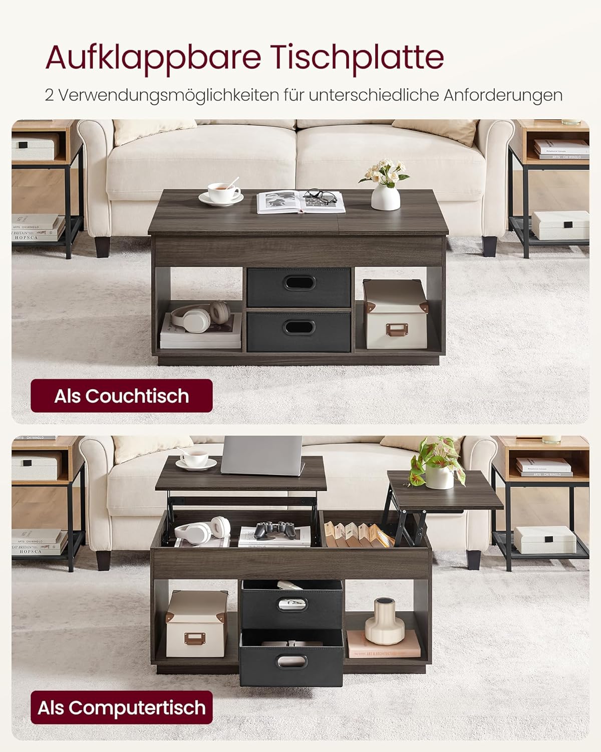 Salontafel – Verstelbare Salontafel – 2 Laden – Verborgen Vakken – Asbruin