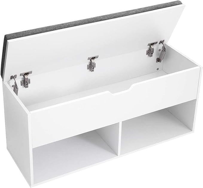 Schoenbank met kussen, opbergbank, ingangsbank met opslag, schoenrekbank, 2 open en 1 verborgen compartimenten, schoenenplank, voor woonkamer, slaapkamer, wit en grijs