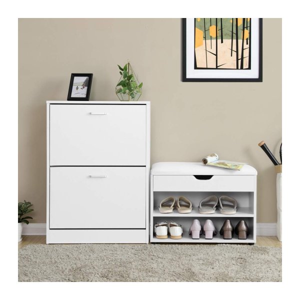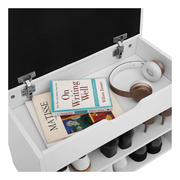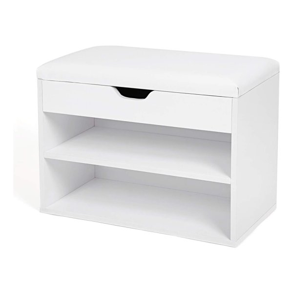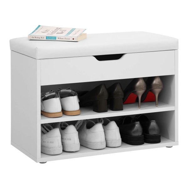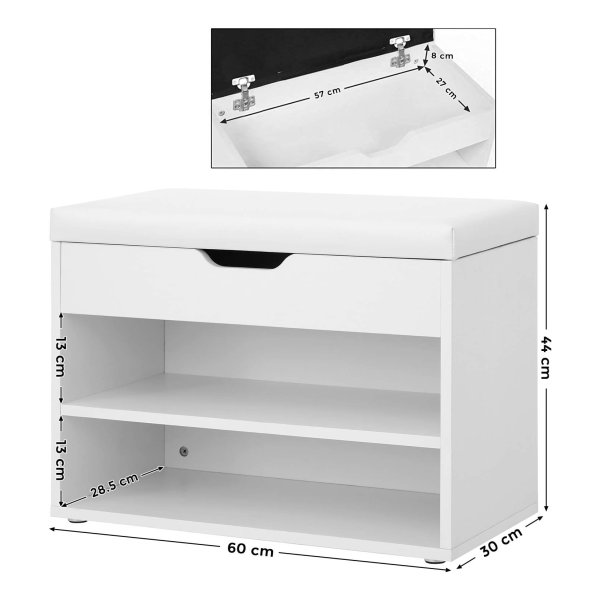 - Deze stijlvolle Schoenbank is een perfecte oplossing voor het opbergen van schoenen. Het is een schoenenrek met een klapdeksel en een gewatteerde zitting. De schoenenplanner heeft twee vakken, waardoor je je schoenen gemakkelijk kunt organiseren. De afmetingen van de Schoenbank zijn 60 x 30 x 44 cm en hij is verkrijgbaar in wit.