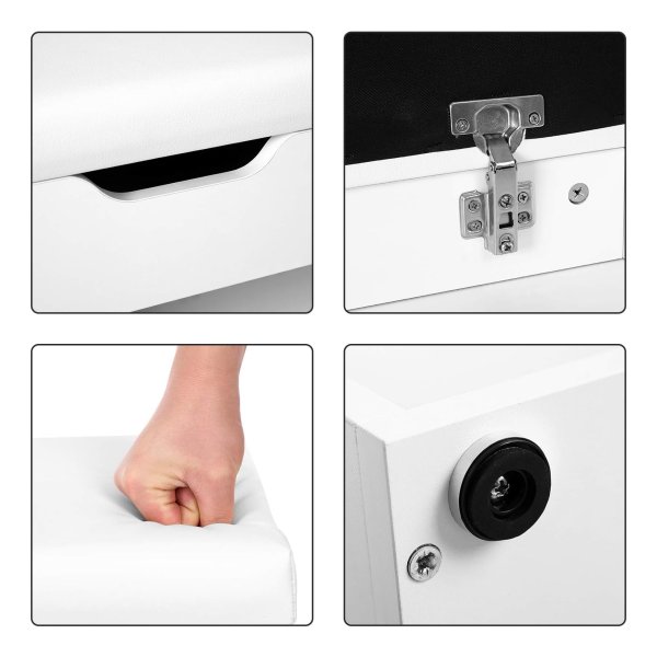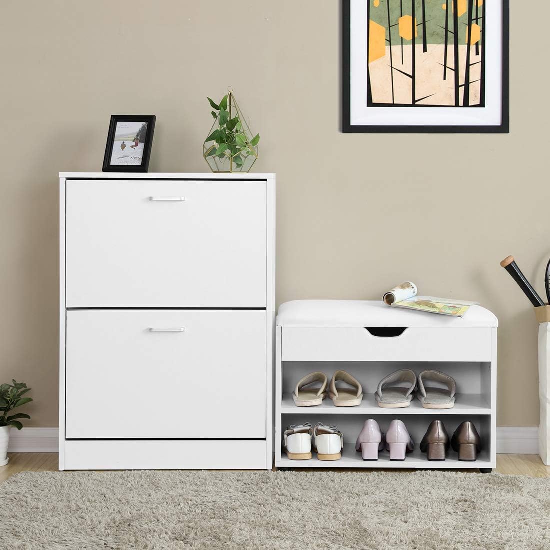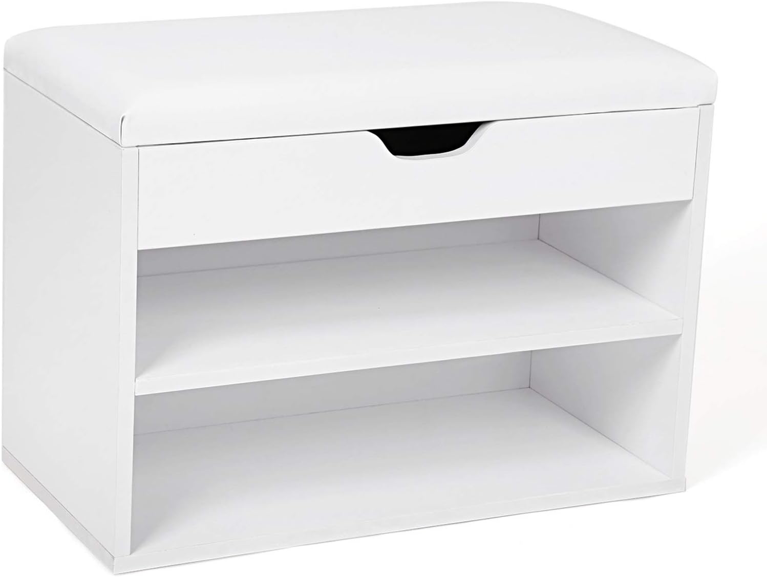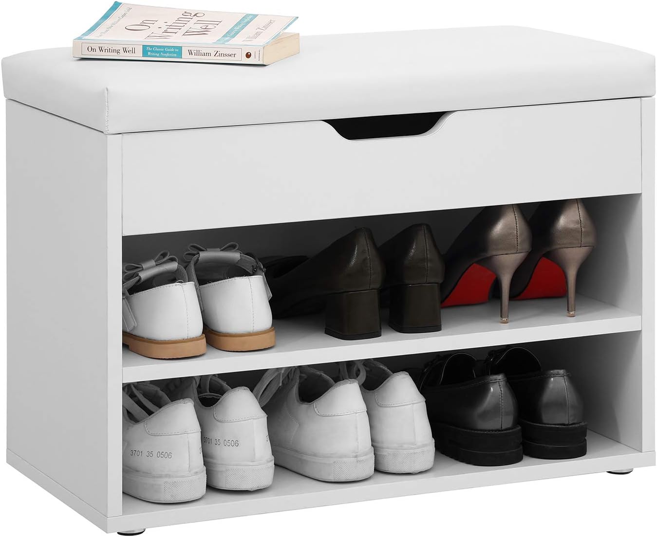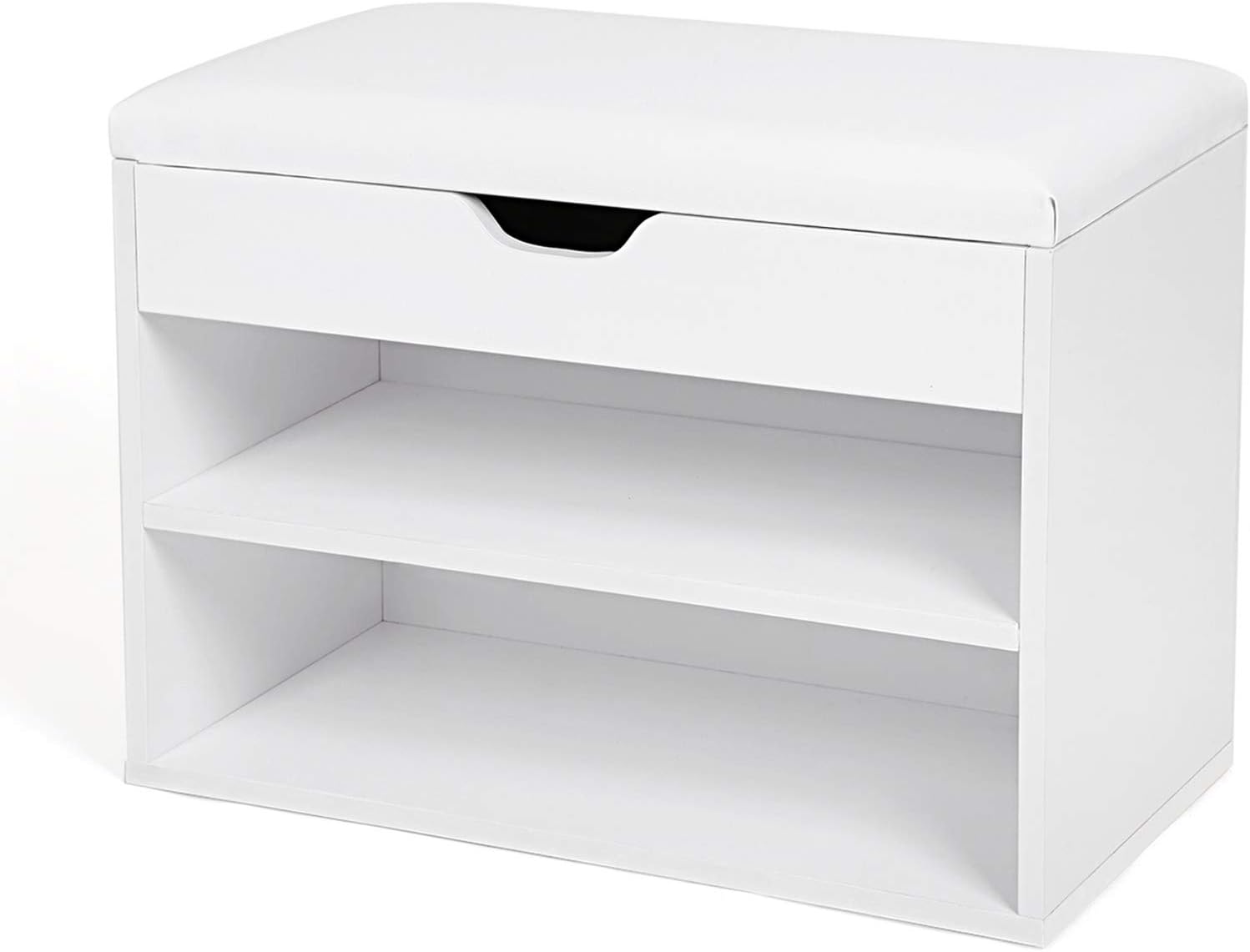 Wit Schoenenrek Met Klapdeksel En Gewatteerde Zitting – Schoenbank Met 2 Vakken, 60 X 30 X 44 Cm