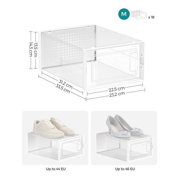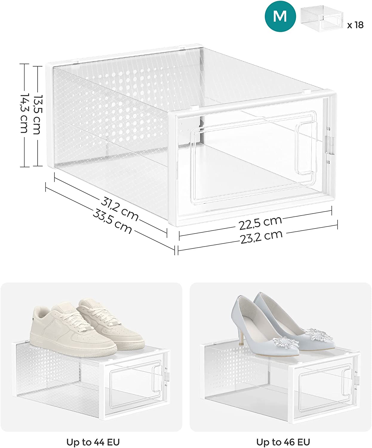 Schoenendozen Set van 18 schoen opbergdozen Schoen Organisator Plastic dozen opvouwbare stapelbaar voor schoenen op maat 42 transparant wit