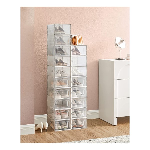 Bullet Point 5 | Wat je krijgt: 18 opvouwbare transparante schoenendozen, die een deur en ventilatieopeningen hebben en op elkaar kunnen worden gestapeld om ruimte te besparen.Met deze praktische schoenendozen kun je eindelijk afscheid nemen van de schoenchaos … |