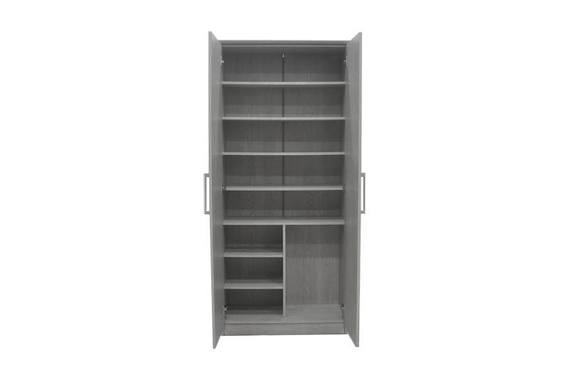 | Bullet Point 1 | De Schoenenkast 'Mike' met 2 deuren in grijze eikenhout-look is gemaakt van Spaanplaat en decoratief materiaal, waardoor het duurzaamheid en comfort biedt. Met afmetingen van H-H 183 x B-L 80 x D-P 37 cm en een gewicht van 56.5 kg, is het geschikt voor een moderne levensstijl en een mooie toevoeging aan elk interieur. |