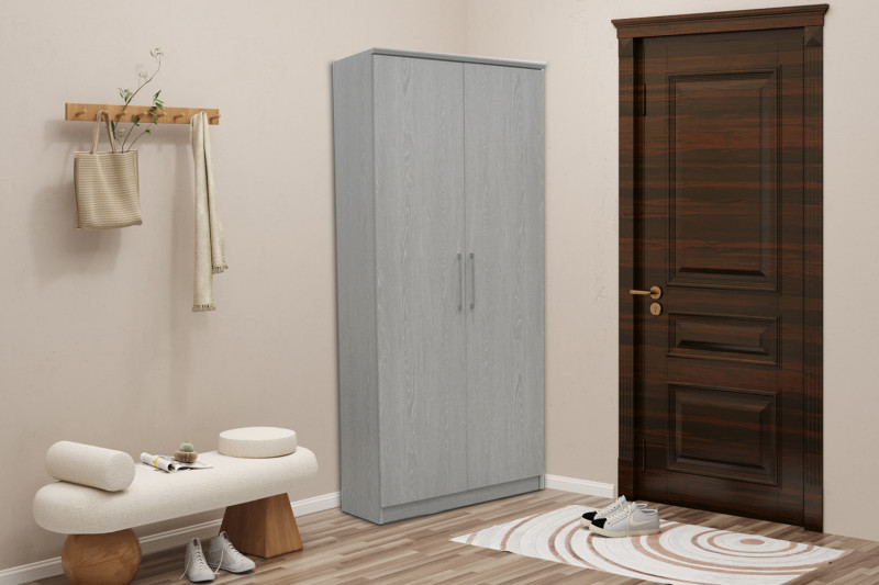 Schoenenkast ‘Mike’ 2 deuren Grijze eik, Spaanderplaat en decor