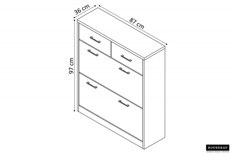 | Bullet Point 2 | De schoenenkast 'Spacio' met 2 laden in het wit is een elegante en functionele keuze voor moderne woonruimtes, gemaakt van duurzame materialen en geschikt voor de moderne levensstijl met afmetingen van 97 x 87 x 36 cm en een gewicht van 40.0 kg, een perfecte aanvulling voor elk interieur. |