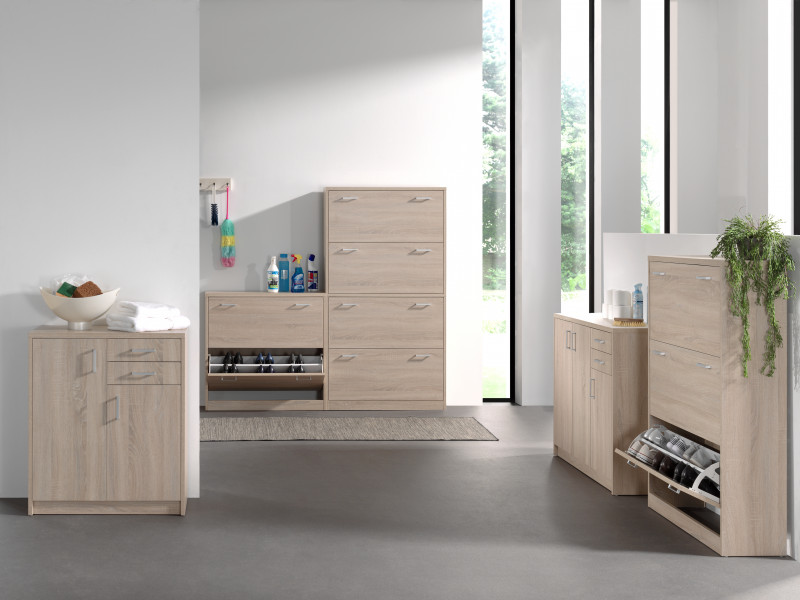 Schoenenkast ‘Spacio’ 3 laden Sonoma, , Spaanderplaat, ABS boorden en decor