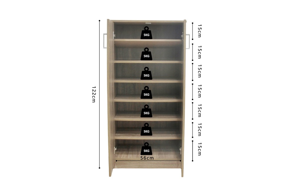 Op zoek naar een praktische en stijlvolle opbergoplossing voor al jouw schoenen? Dan is dit meubel met 2 deuren in de warme Sonoma kleur de perfecte keuze voor jou. Met een hoogte van 122 cm, een breedte van 60 cm en een diepte van 37 cm biedt dit schoenenopbergmeubel voldoende ruimte om al jouw schoenen netjes op te bergen.