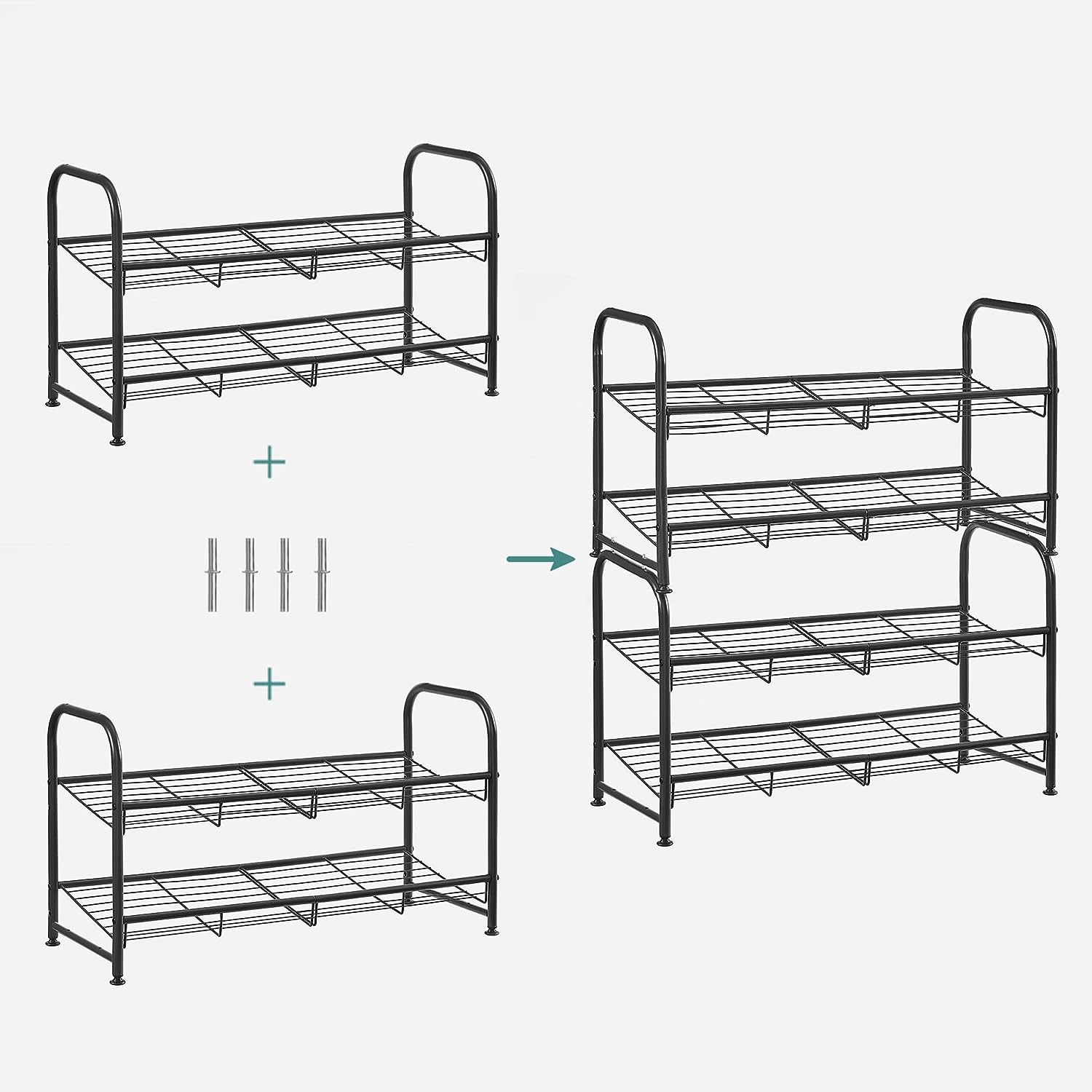 Schoenenrek Met 2 Legplanken, Stapelbare Schoenenopberger, Voor Maximaal 8 Paar Schoenen, Van Staal, 68,5 X 27,5 X 37 Cm, Voor Hoge Hakken, Sportschoenen, Slippers, Zwart