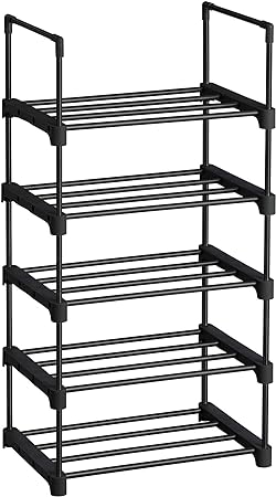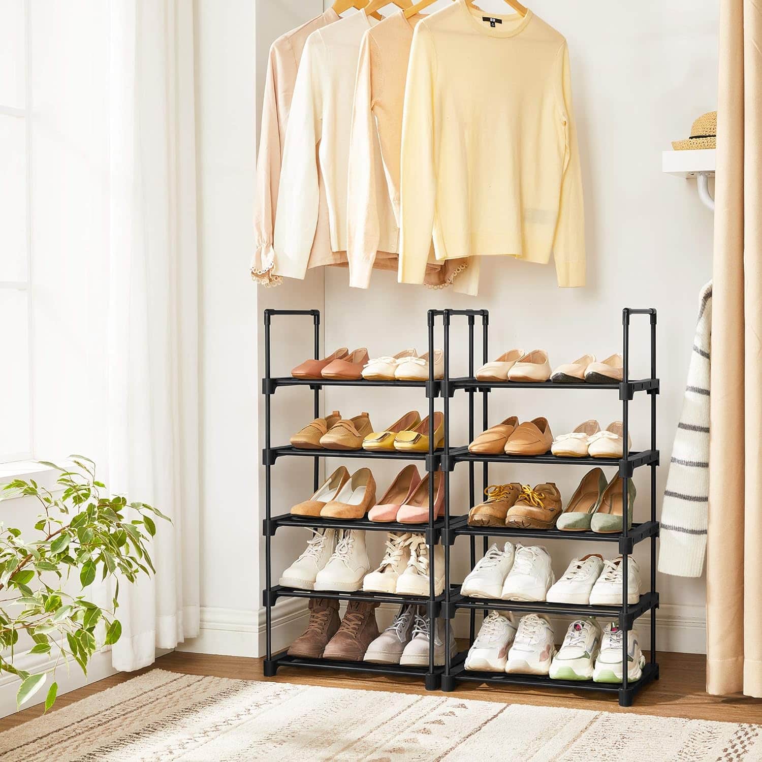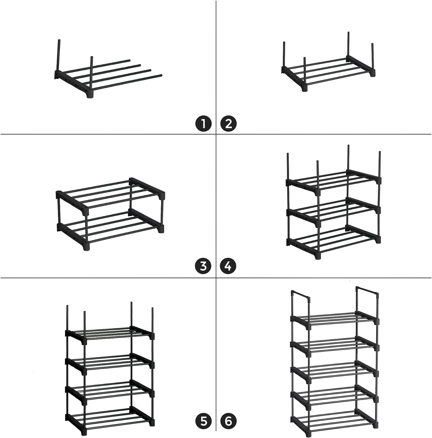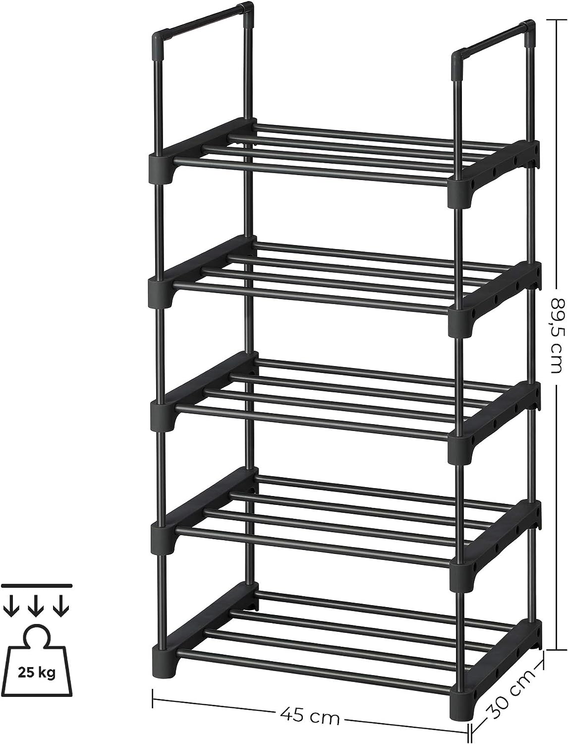 5-laags schoenenrek metalen schoenenrek stapelbare ruimte reddende schoenenrek multifunctionele staande plank voor gang slaapkamer woonkamer zwart