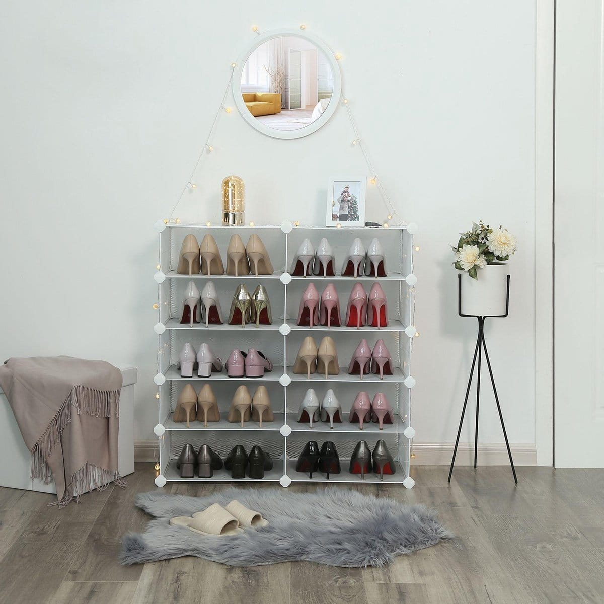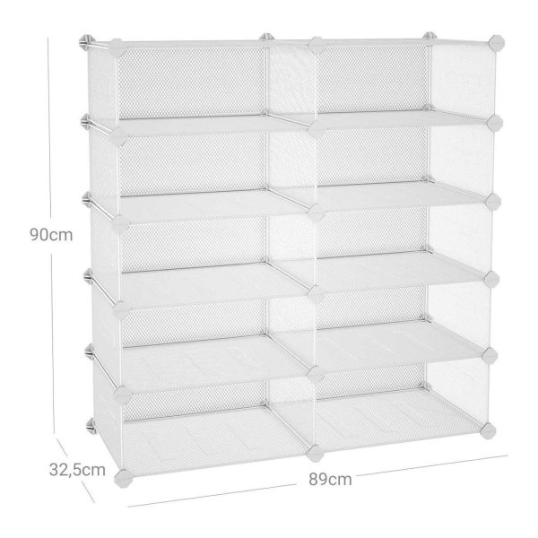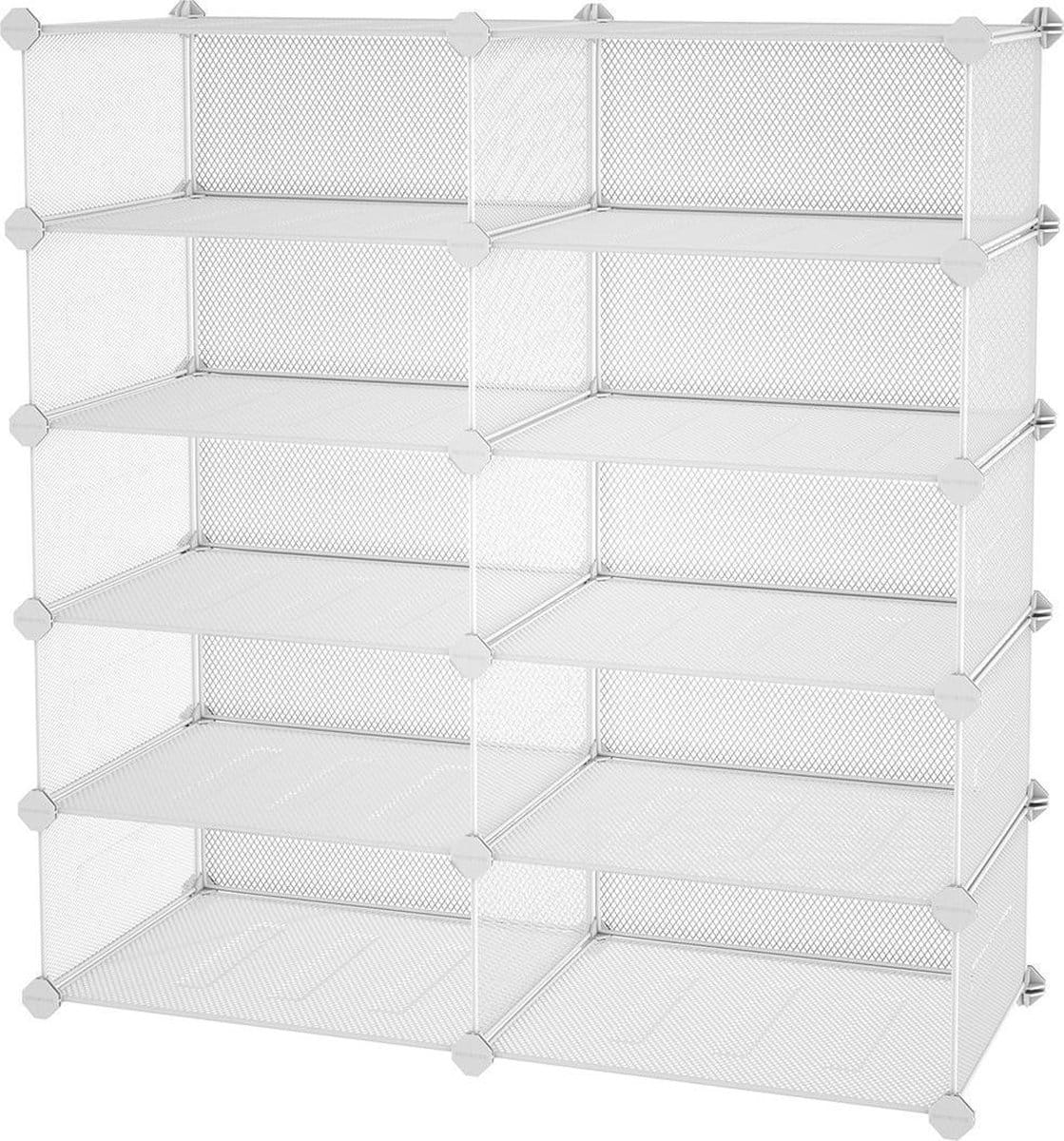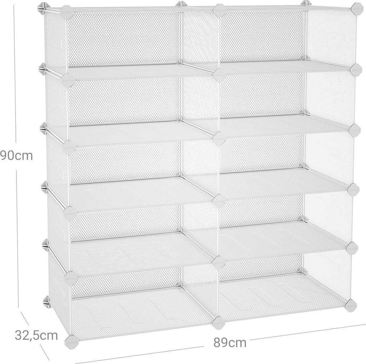 Update uw ingang met het aanpasbare doe-het-zelf-ontwerp van het 10 kubus schoenenrek, een moderne toevoeging die uw gang opruimt en uw schoenen van de vloer houdt. Dankzij de dichte metalen gaasplanken vallen kleine voorwerpen niet door, waardoor het rek ideaal is voor schoenen, kleding, speelgoed, gereedschap, sokken en accessoires. Elke kubus kan tot 15 kg dragen, waardoor u voldoende opbergruimte heeft.