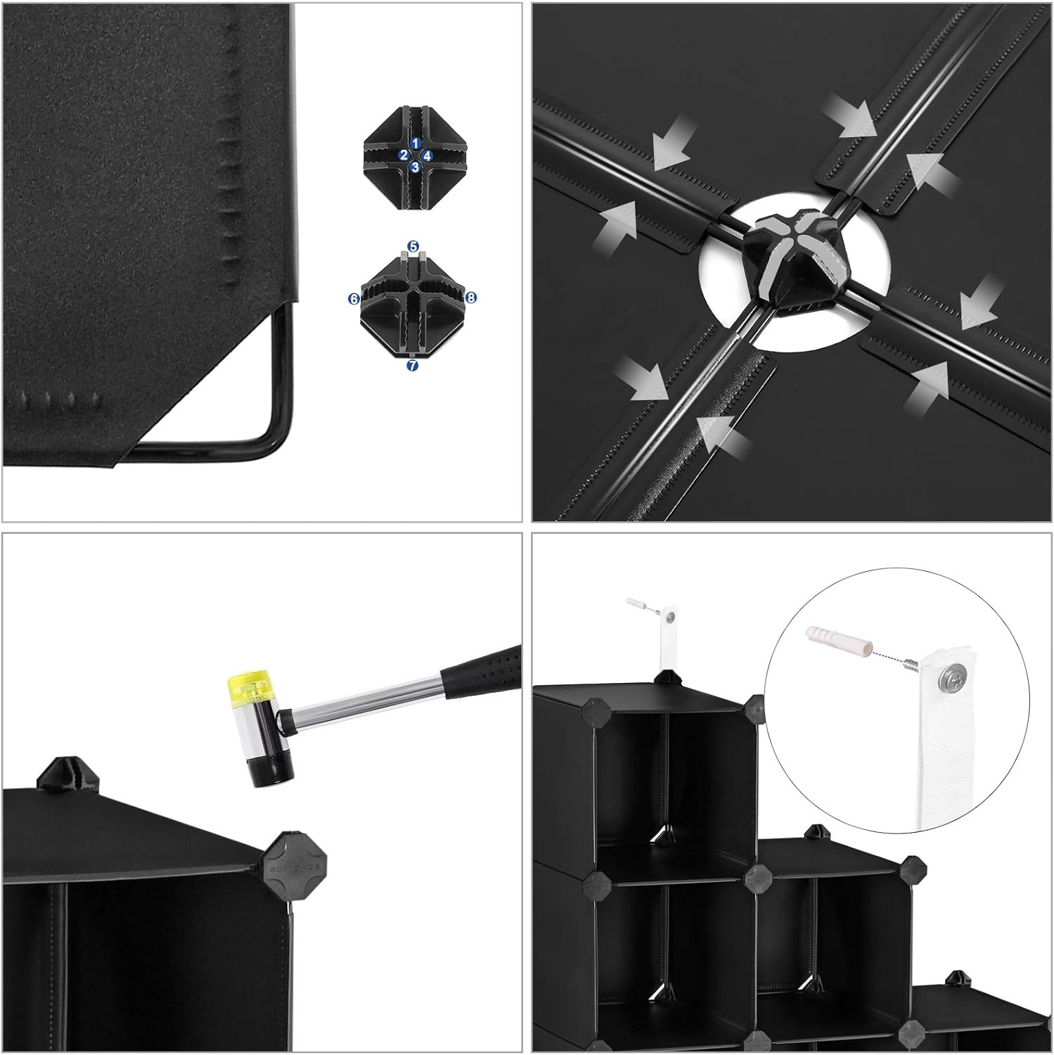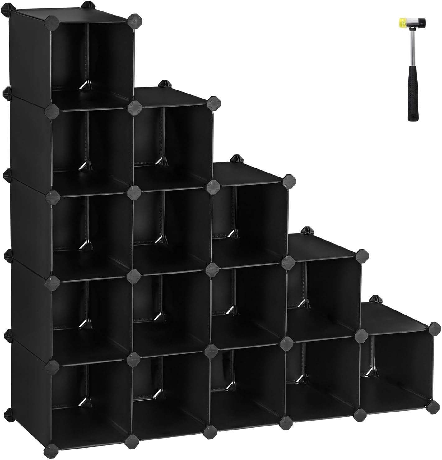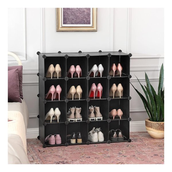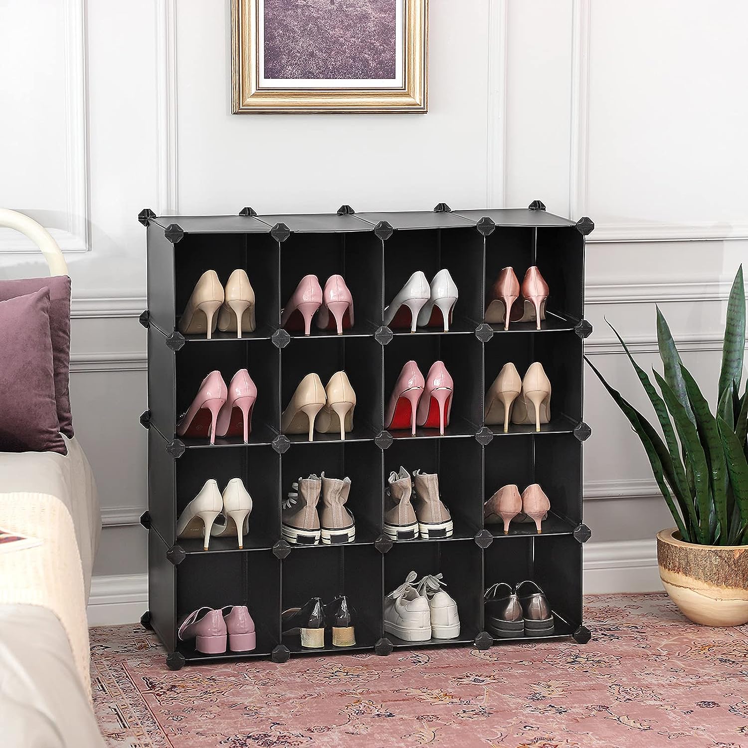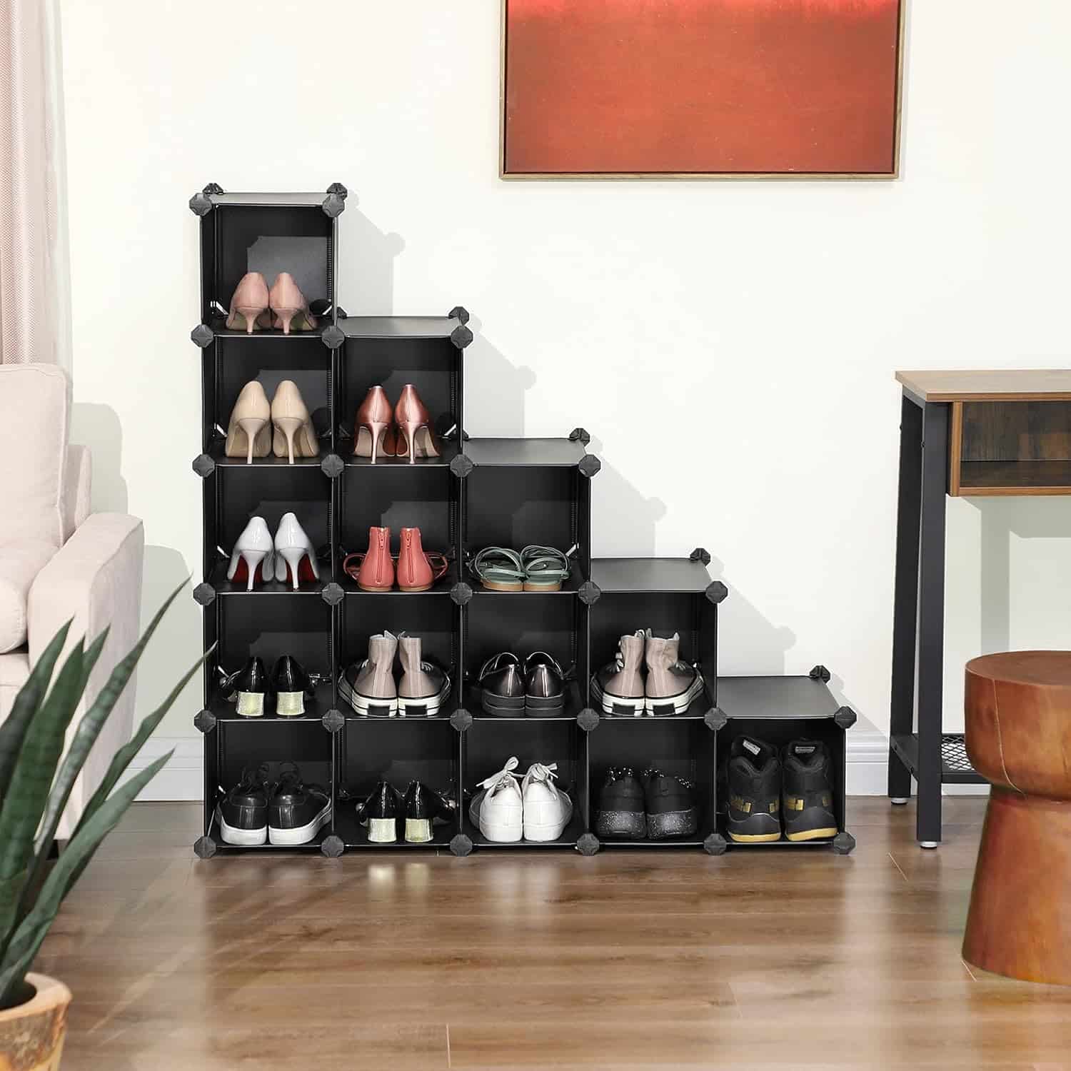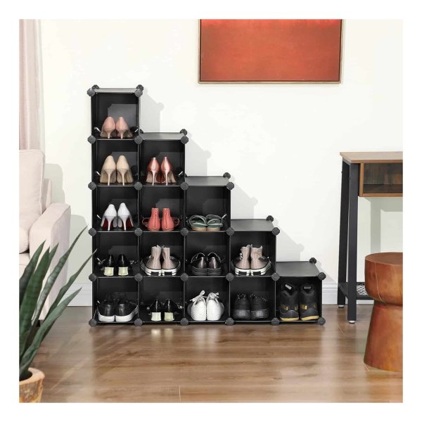 Schoenrek kunststof, rechthoekig schapsysteem met 15 vakken, doe het zelf insteekplank, opbergrek, garderobe, schoenenopberger, metaaldraad, zwart