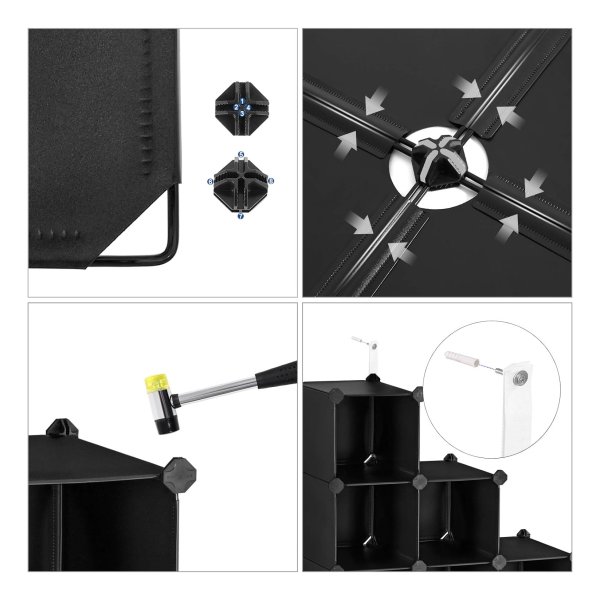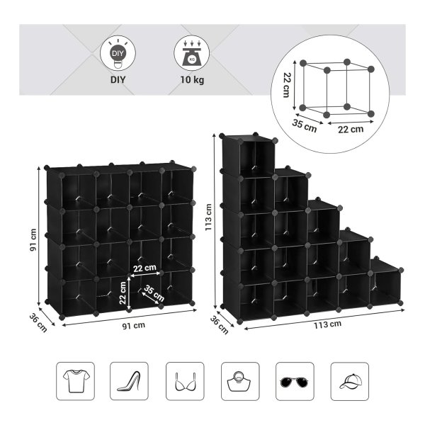 Tags: LPC44HV1, metaaldraad, rechthoekig schapsysteem met 15 vakken, Schoenrek kunststof, zwart