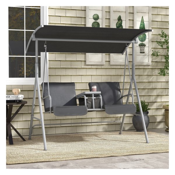 1Schommelbank – Met luifel – Inclusief dienblad – Zwart