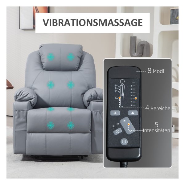Seniorenfauteuil – Massagefunctie – Sta-op – Grijs