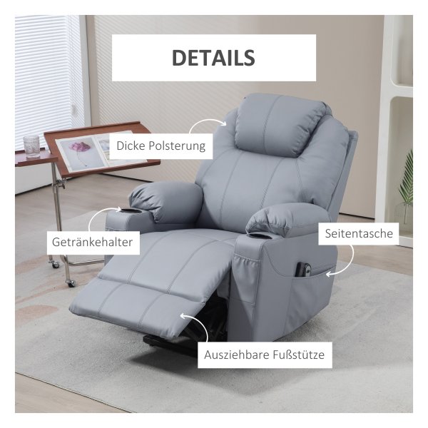 De Seniorenfauteuil met Massagefunctie en Sta-op in de kleur Grijs is de ideale metgezel voor ontspanning, genezing en comfort. Mis deze kans niet om uw dagelijkse routine te verbeteren met dit hoogwaardige en functionele meubelstuk. Bestel vandaag nog en ervaar het verschil!