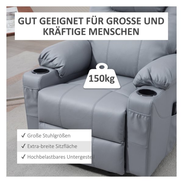De HOMCOM seniorenfauteuil is een comfortabele relaxstoel met massagefunctie en opstahulp. Ideaal voor senioren en mensen met beperkte mobiliteit. Met neigbare rugleuning, verstelbare timer en tot 150 kg draagvermogen.