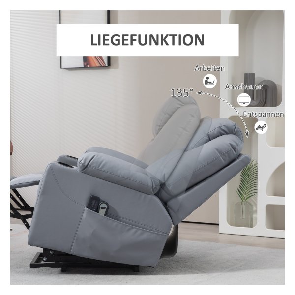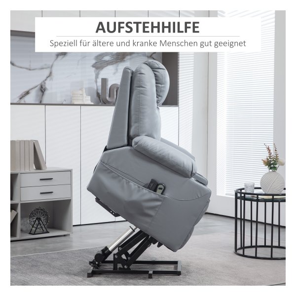 Bequeme Aufstehhilfe: Ervaar het veilige en gemakkelijke opstaan dankzij de sta-op functie van deze fauteuil, ideaal voor senioren en bewegingsbeperkte personen. Met de meegeleverde afstandsbediening kunnen alle functies van de fauteuil eenvoudig worden bediend.