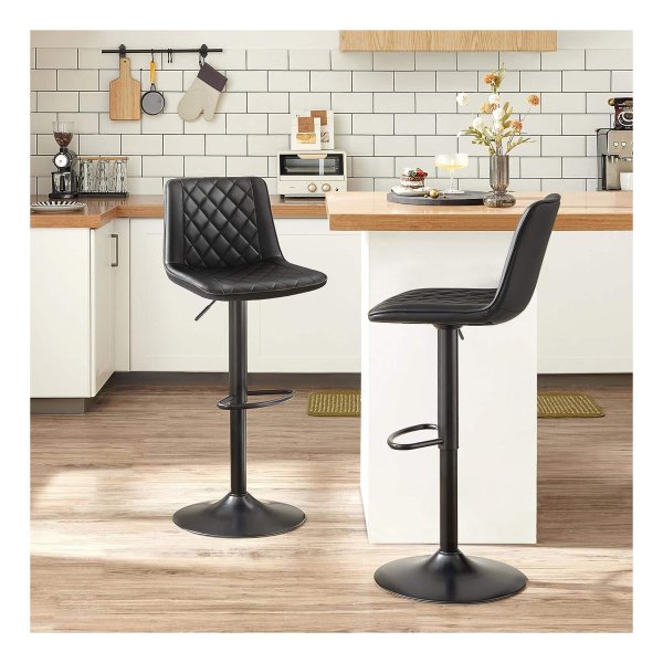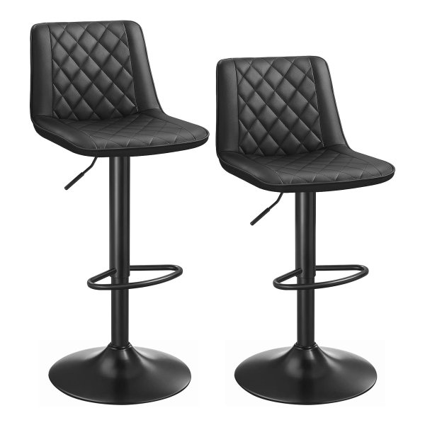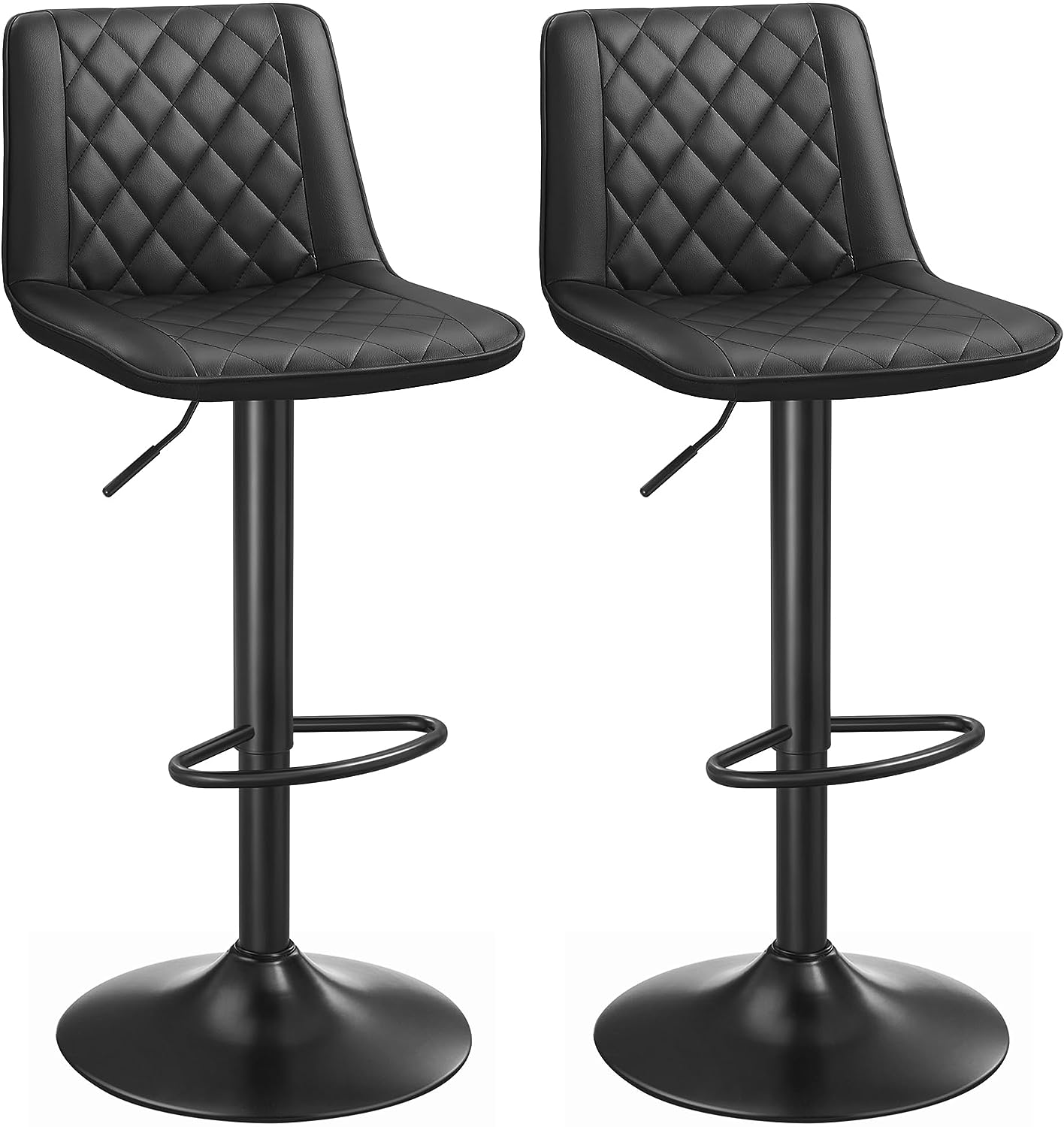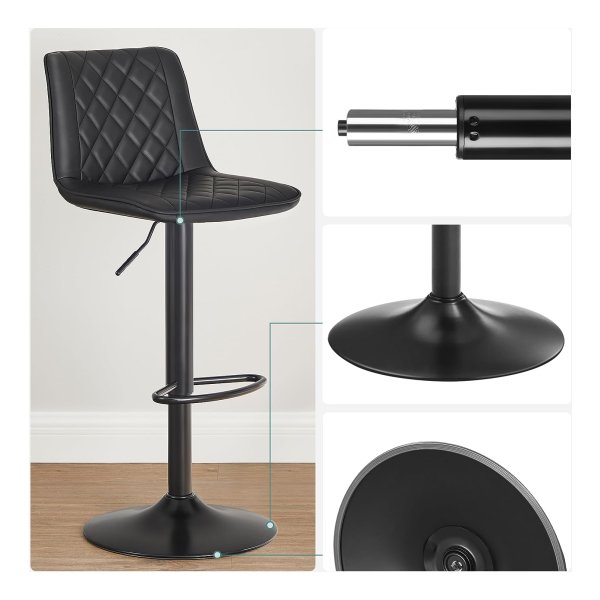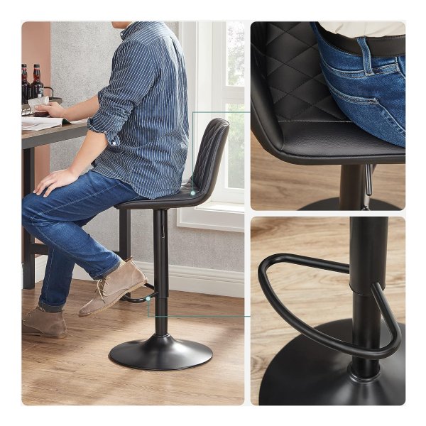 Set Van 2 Bar Krukken, Verstelbare Hoogte, Met Rugleuning, Gewatteerde Zitting, Metalen En Pu Gewatteerde Voetsteun, İn Woonkamer En Restaurant, Laadvermogen 120 Kg, Zwart