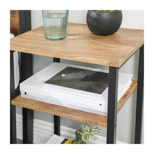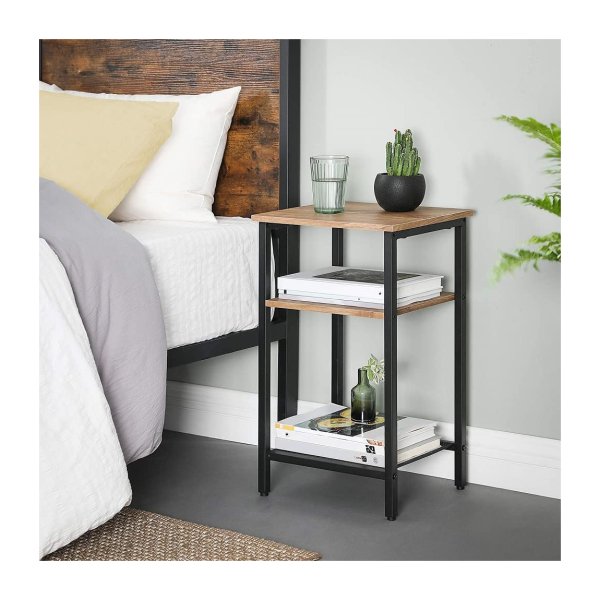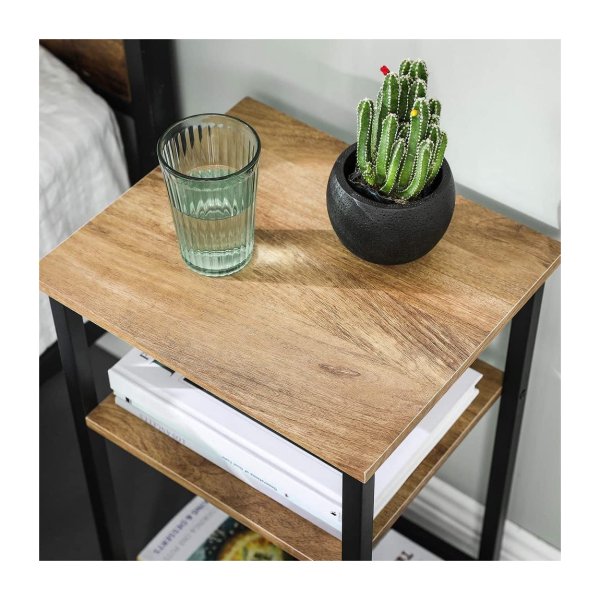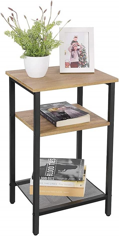 – 3-laag bijzettafeltje, nachtkastje in de industriële stijl, stevig stalen frame, voor slaapkamer, woonkamer, gemakkelijke montage, honingbruin en zwart, 34 x 29 x 58 cm
