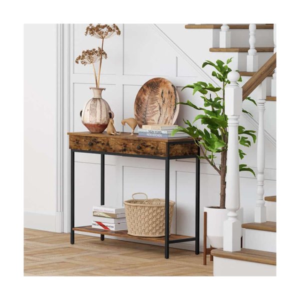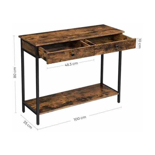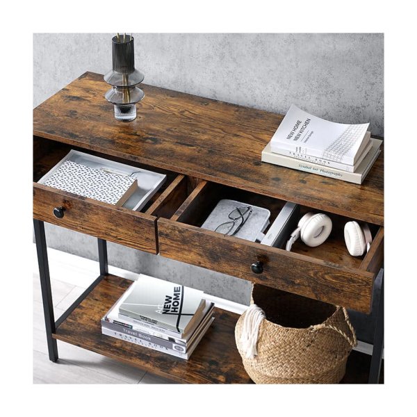 Deze sidetable is niet alleen een decoratief meubelstuk, maar ook een handige opbergoplossing. Met twee lades biedt deze tafel voldoende ruimte om kleine spullen zoals sleutels, portemonnee en post georganiseerd te houden. Daarnaast is de tafel voorzien van verstelbare voeten voor maximale stabiliteit, zelfs op tapijt.