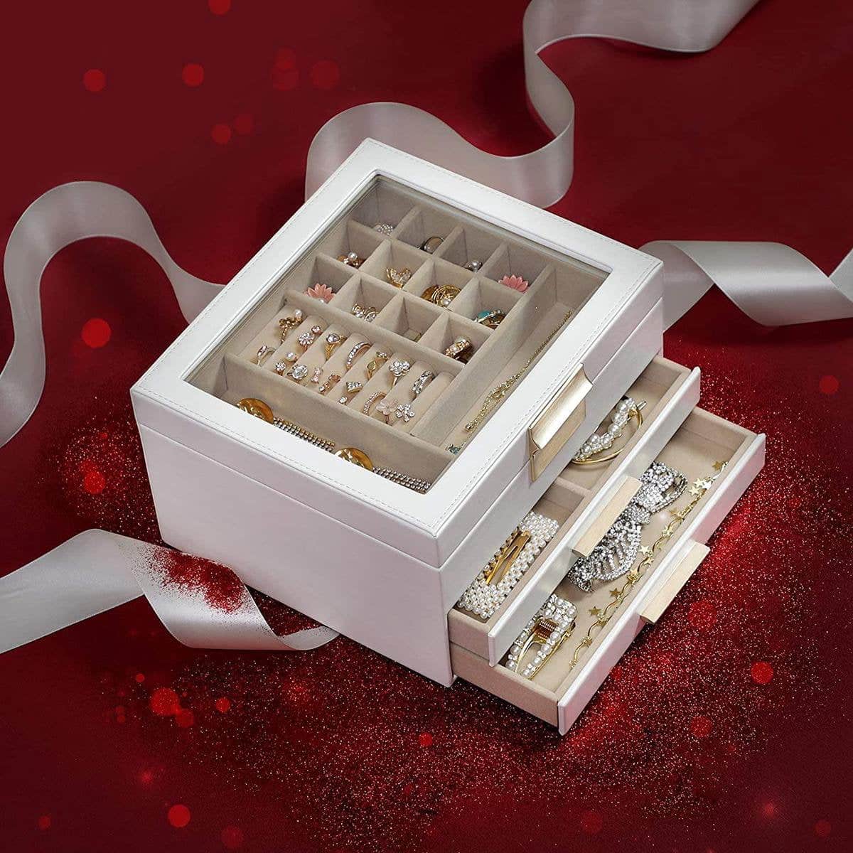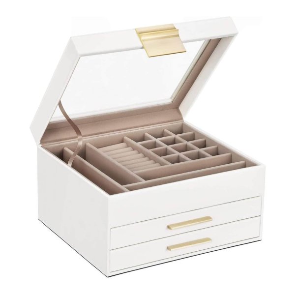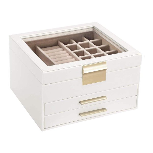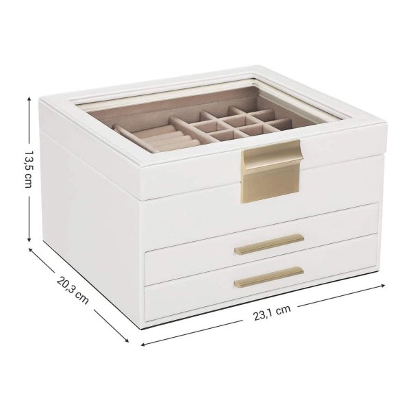 Sieradendoos – Moderne elegantie – 3 lagen & glazen deksel – Wit