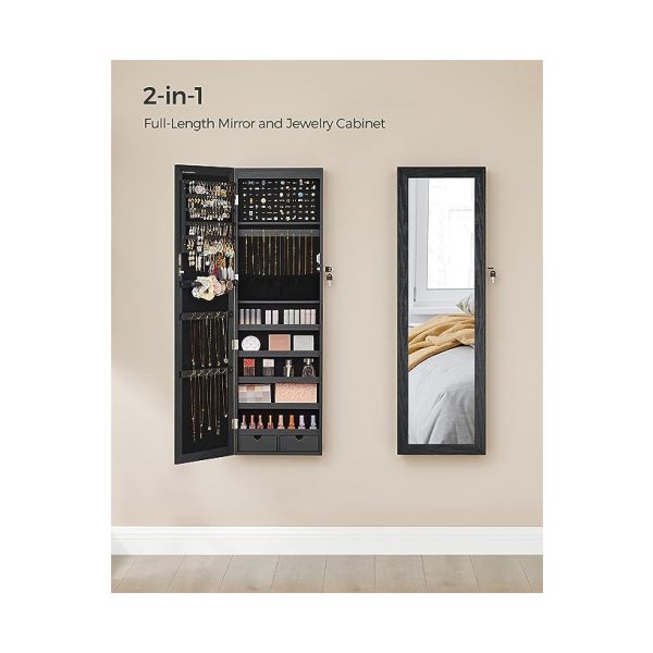 Tags: afsluitbare spiegelkast, JJC093B01, Sieradenkast, wandmontage, wandspiegel, zwart