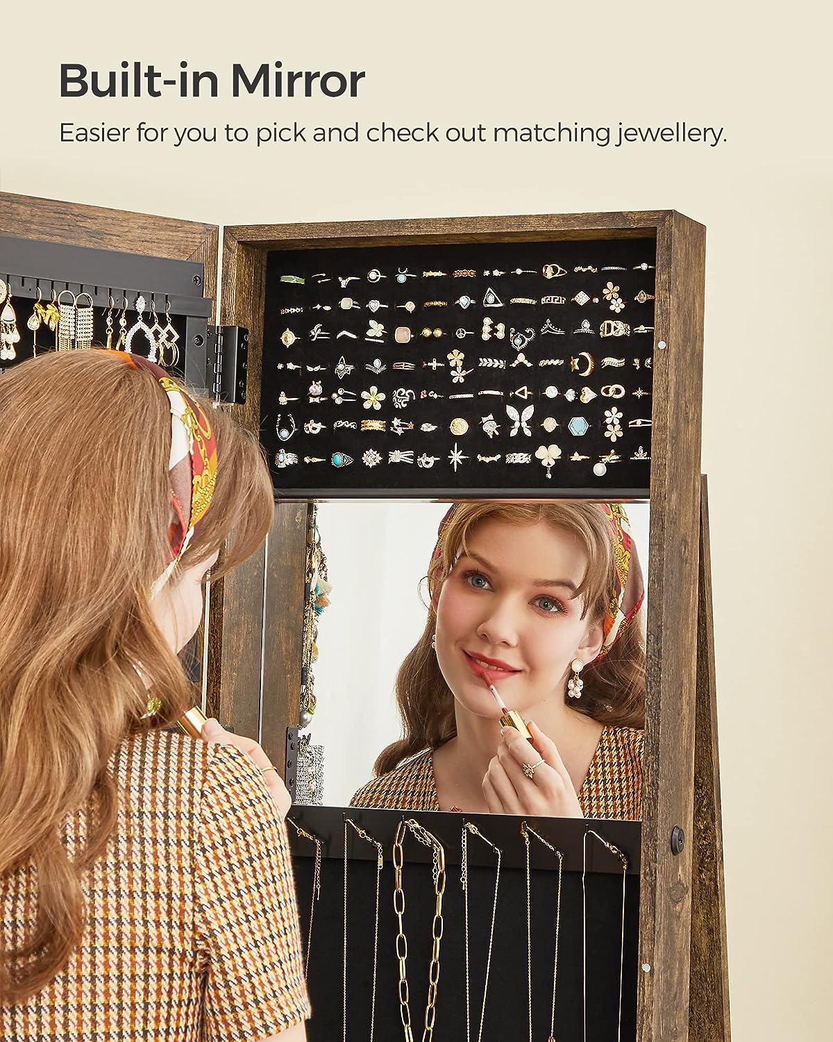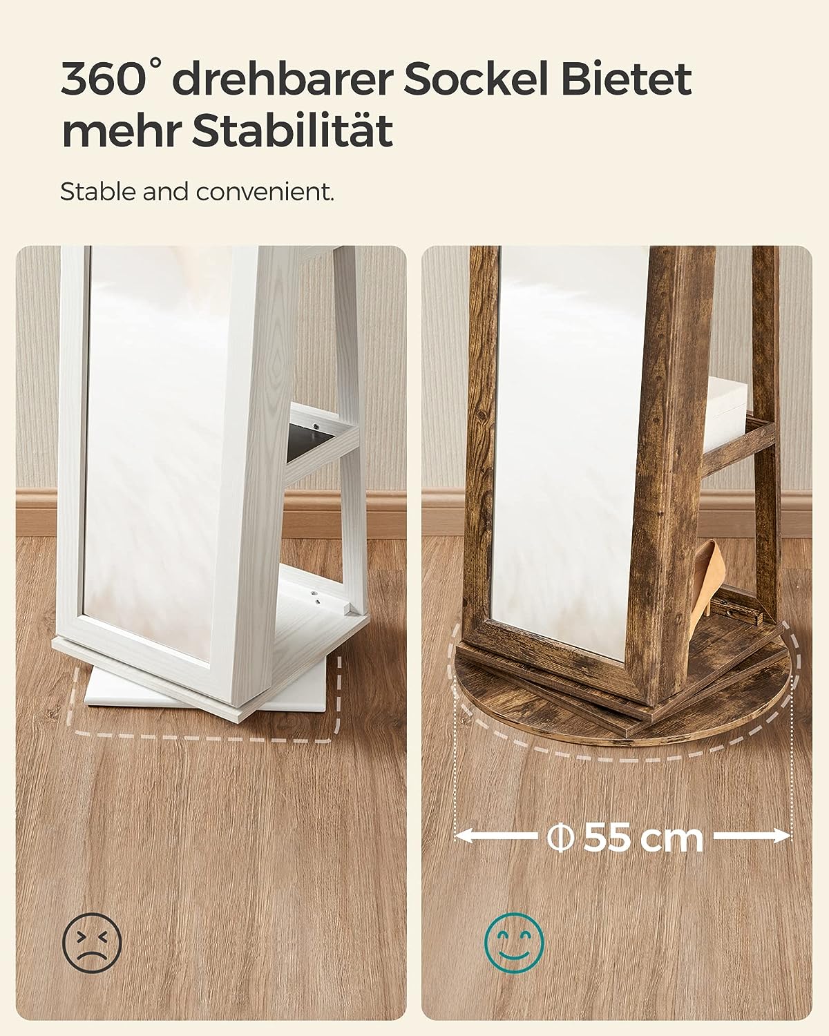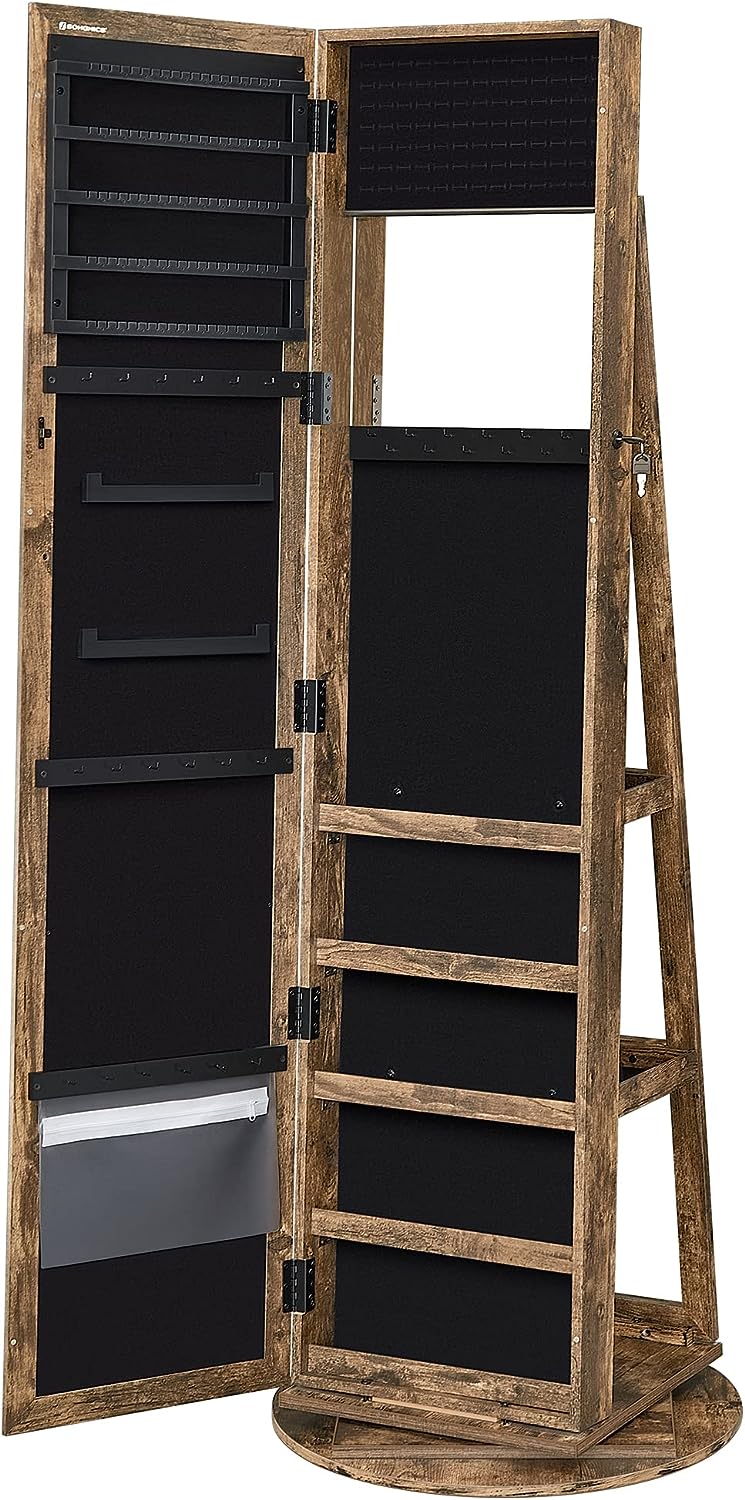 Sieradenkast, Spiegelkast, 360° Draaibaar, Afsluitbaar, 3-İn-1, Sieraden Opberger, Met Spiegel, Planken, Slot, Vintage Bruin