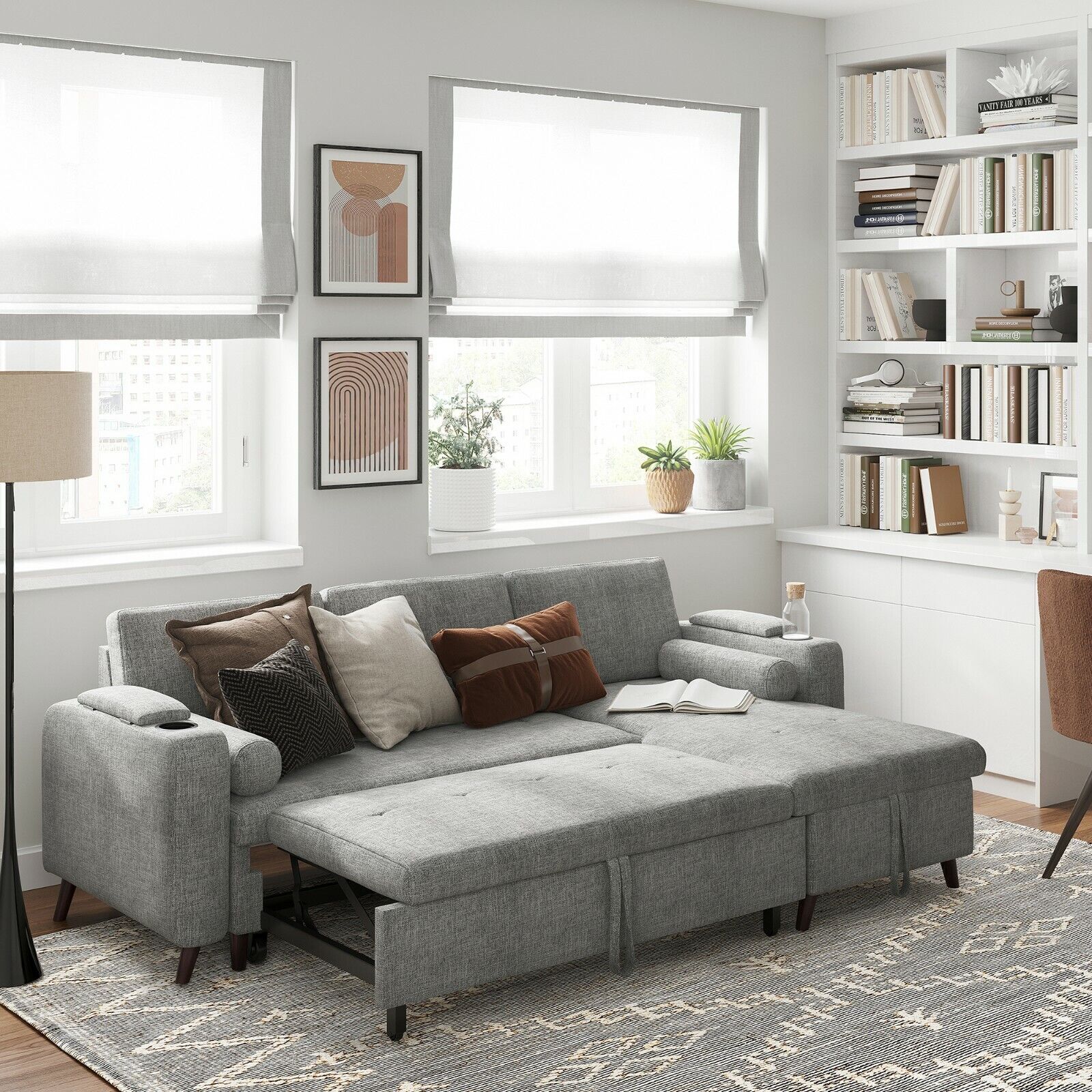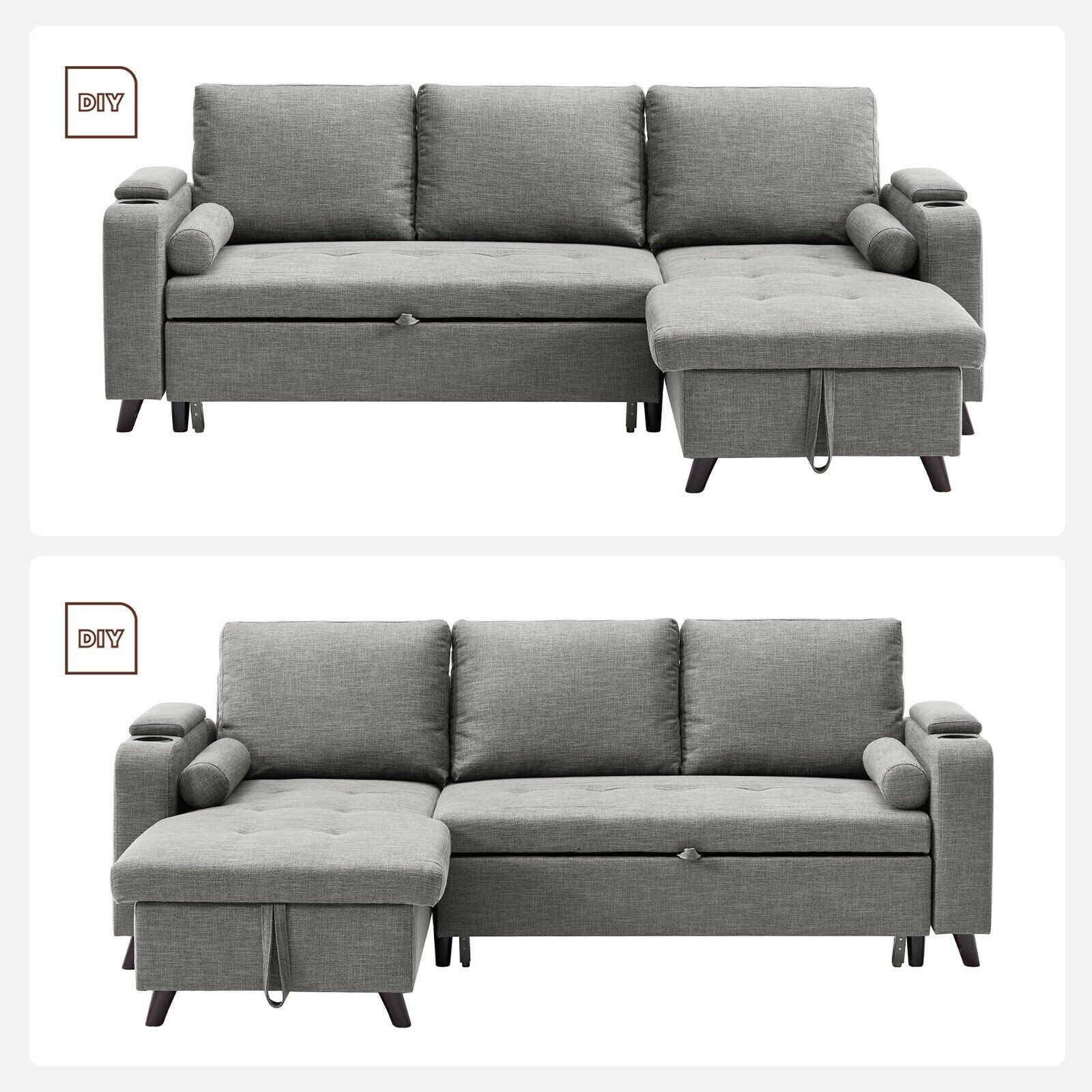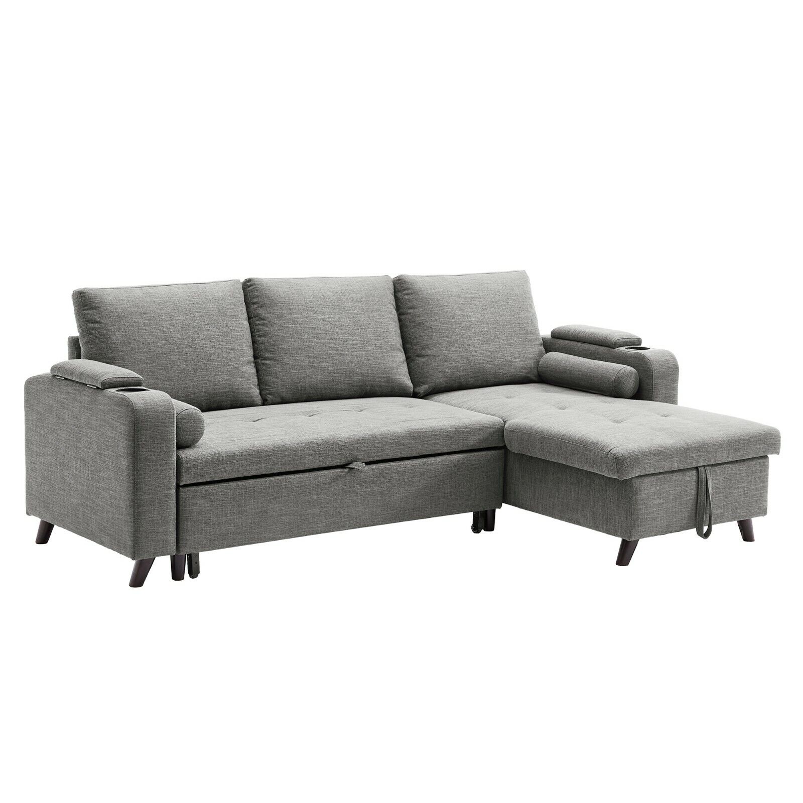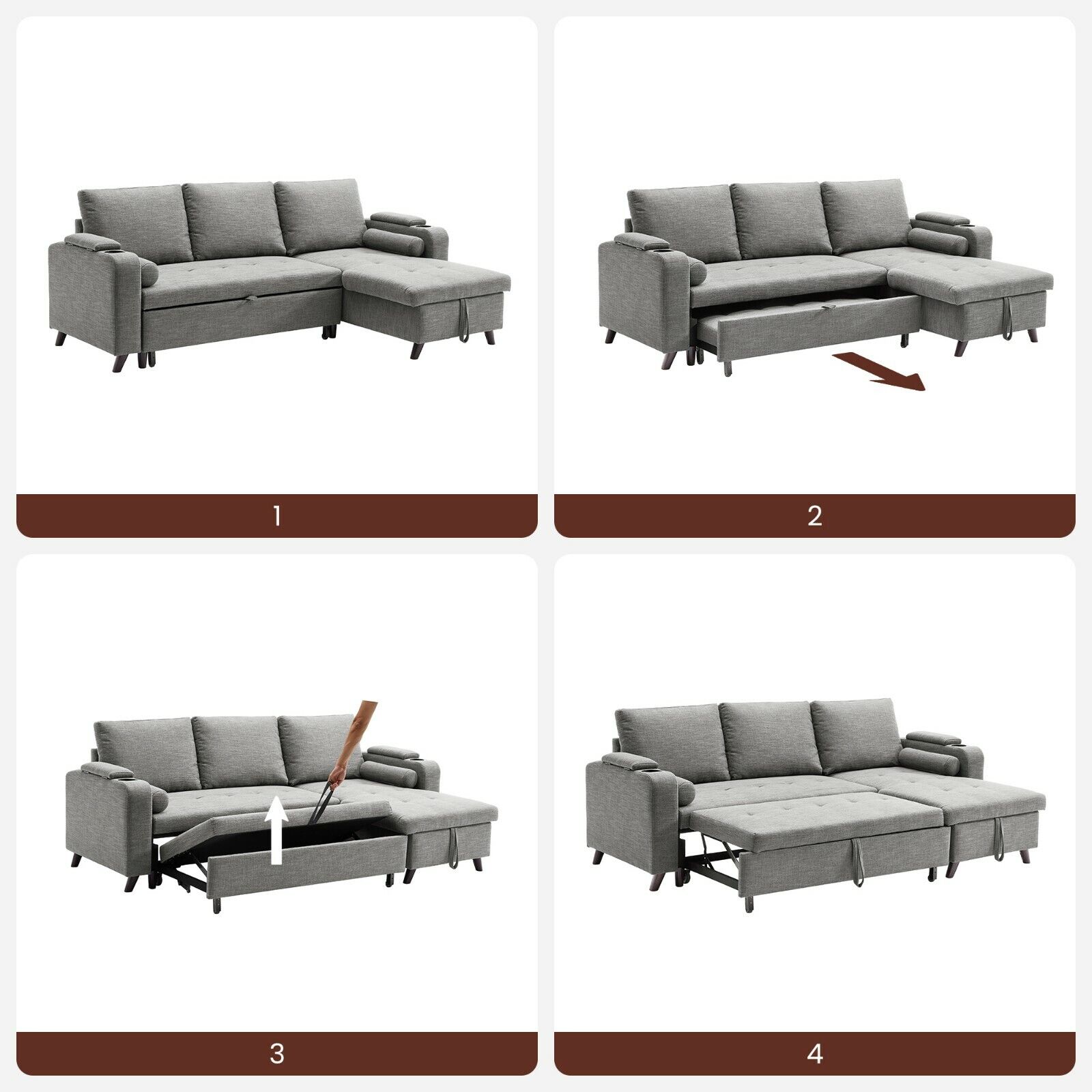 Slaapbank, Bedbank met opbergruimte, gestoffeerde meubels, lichtgrijs