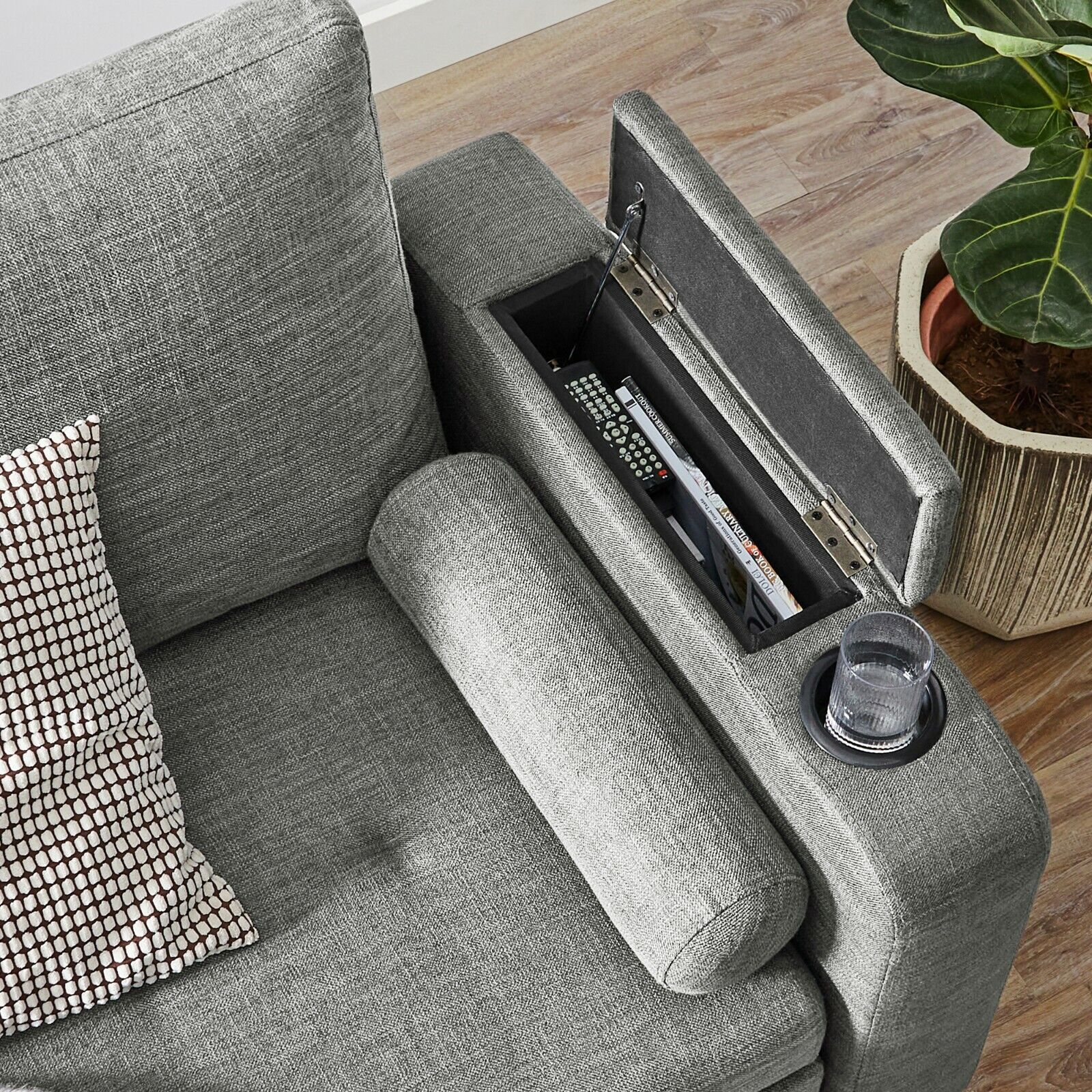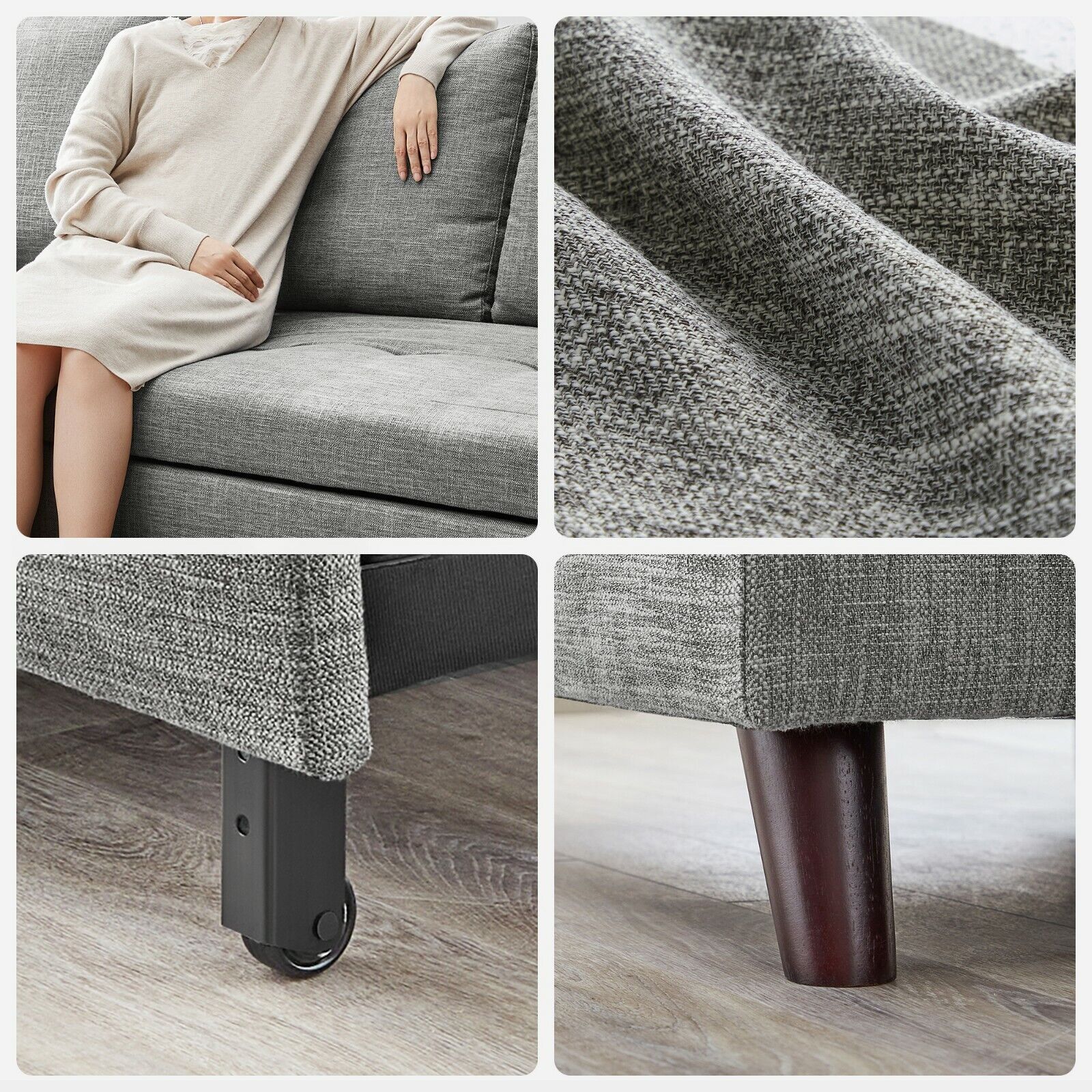 Materiaal: Katoen linnen mengweefsel, schuimvulling, multiplex, rubberhout