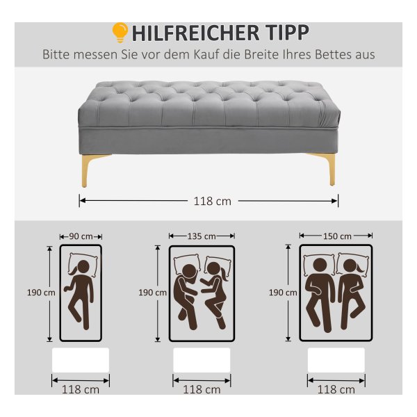 Deze gestoffeerde bedbank is niet alleen een lust voor het oog, maar ook zeer praktisch in gebruik. Dankzij het veelzijdige ontwerp past deze bank niet alleen perfect in uw slaapkamer, maar ook in uw woonkamer of zelfs in de logeerkamer. De hoge poten geven de bedbank een verfijnde uitstraling en zorgen ervoor dat deze een statement maakt in elke ruimte.