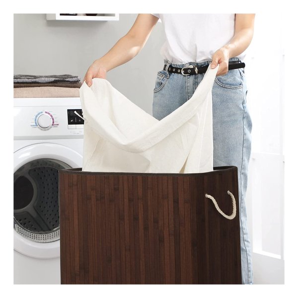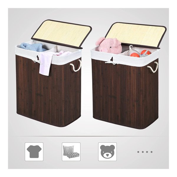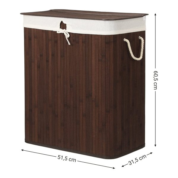 *WAT JE KRIJGT: Een wasmand van , gemaakt van bamboe en heeft 2 aparte vakken. Met deze kist sorteer je gemakkelijk donkere en lichte kleding voor de wasdag