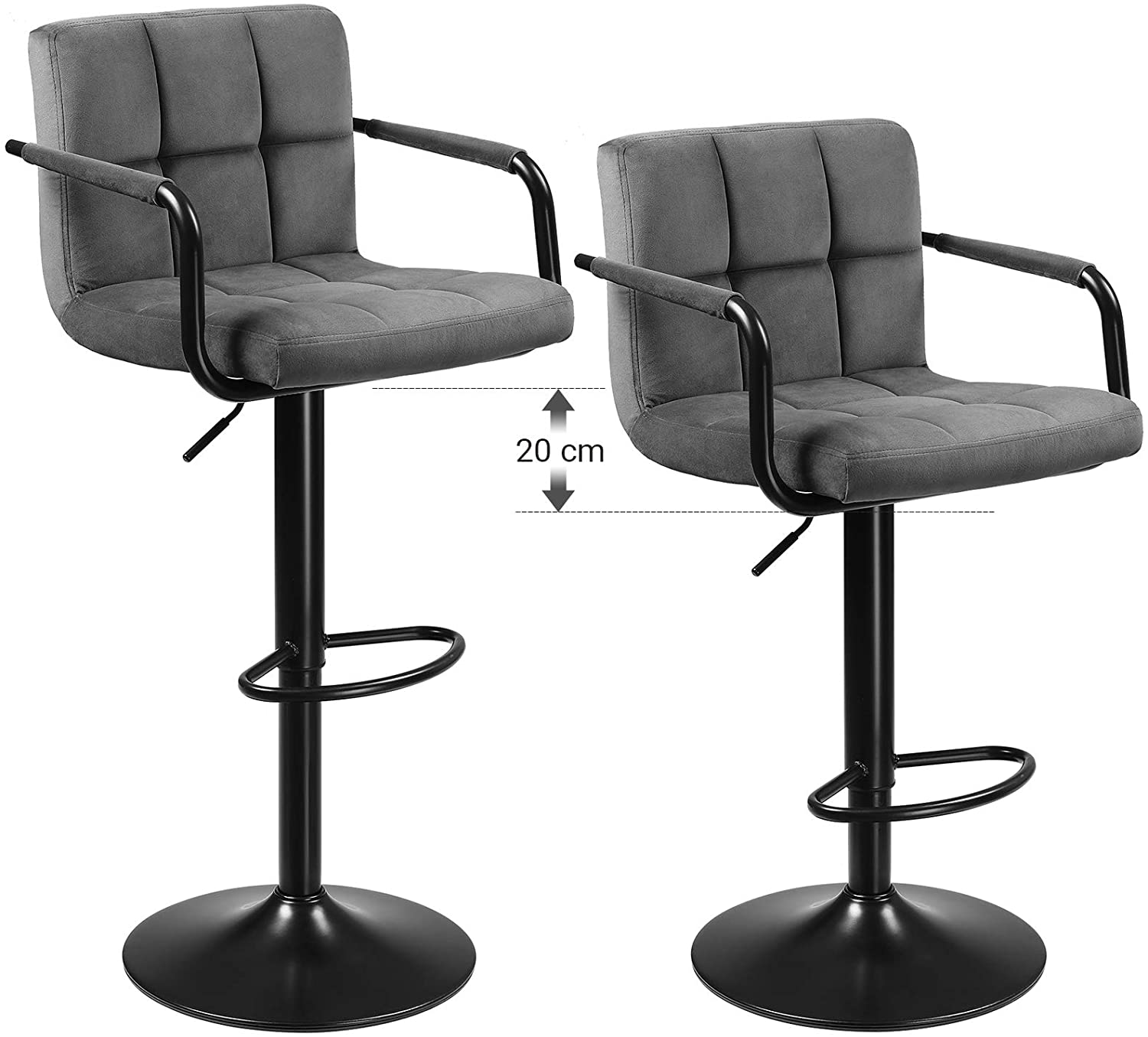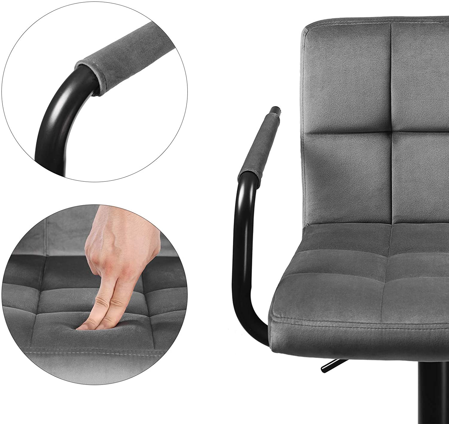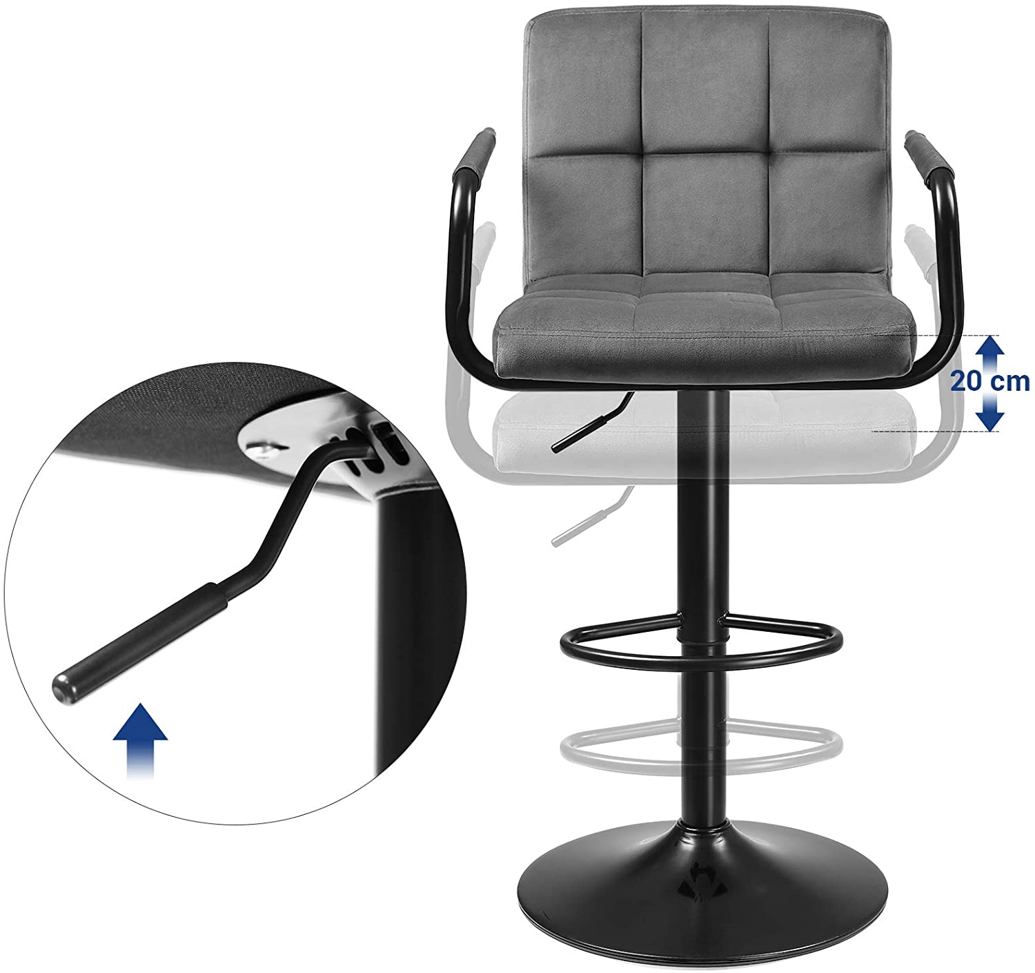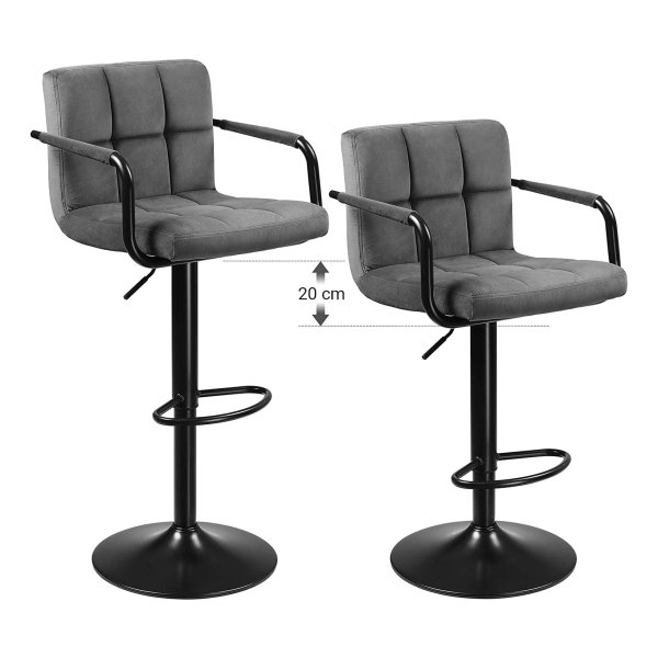 Barkruk, 2-Delige Set Barstoelen, Met Fluwelen Bekleding, İn Hoogte Verstelbaar, Keukenstoelen, Draaistoelen Met Armleuningen, Rugleuning En Voetensteun, Metaal, Donkergrijs