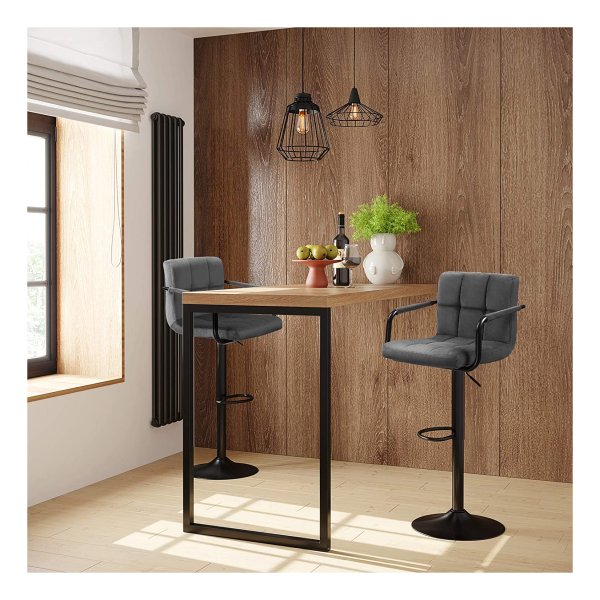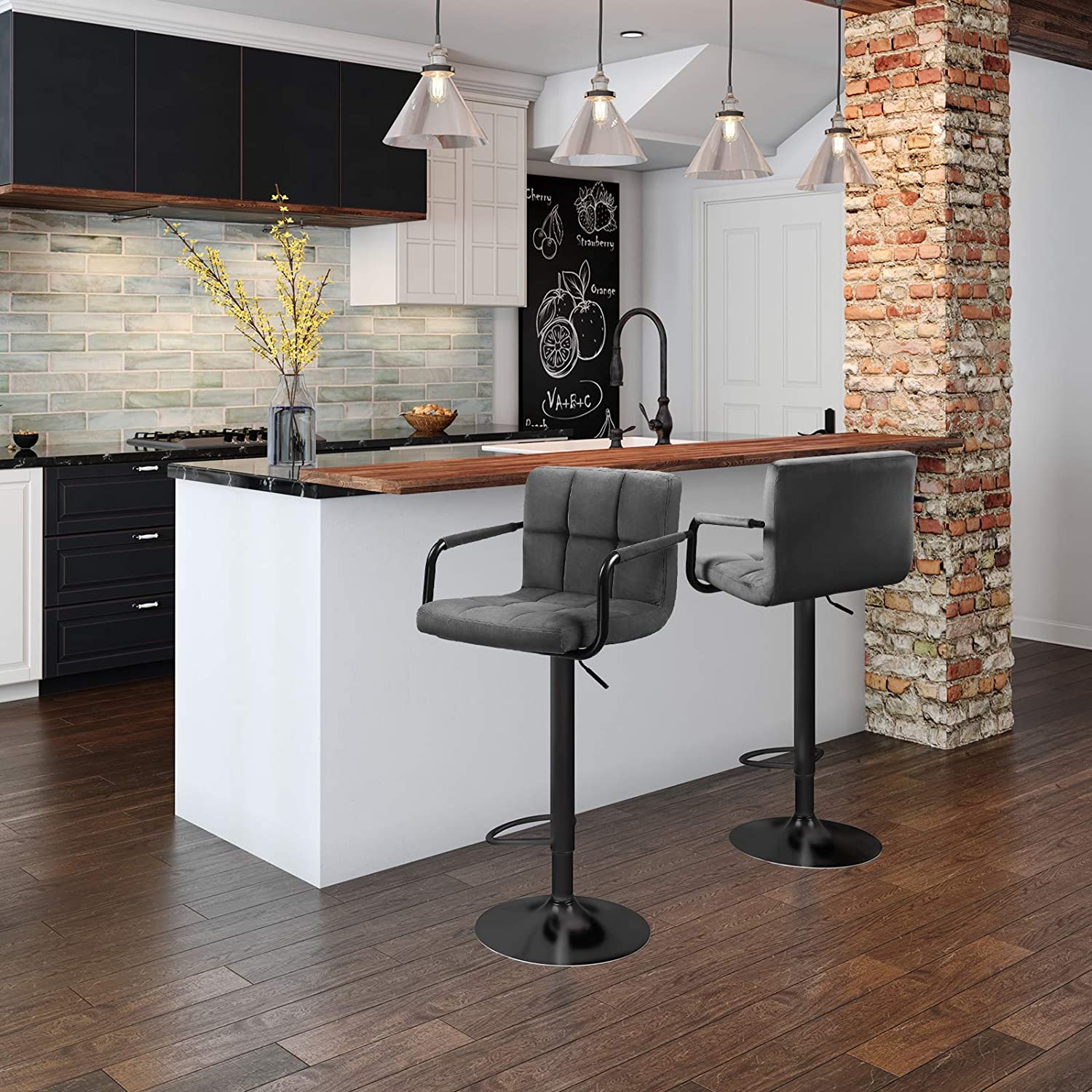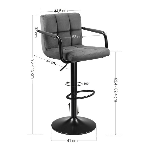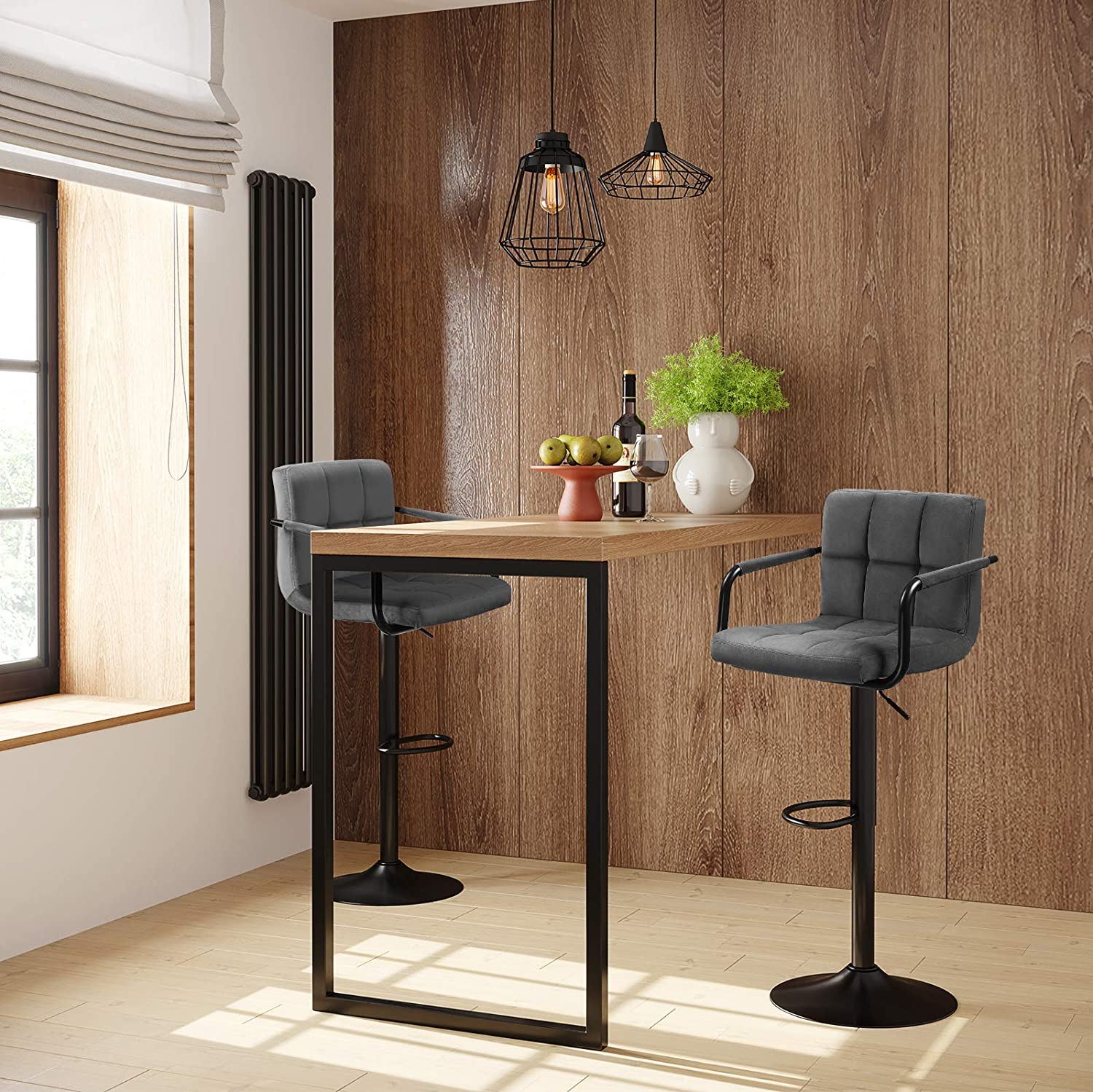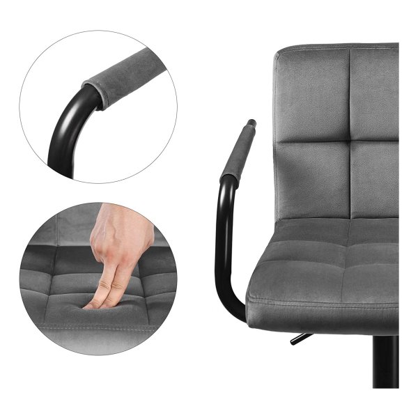 Barkruk, 2-Delige Set Barstoelen, Met Fluwelen Bekleding, İn Hoogte Verstelbaar, Keukenstoelen, Draaistoelen Met Armleuningen, Rugleuning En Voetensteun, Metaal, Donkergrijs
