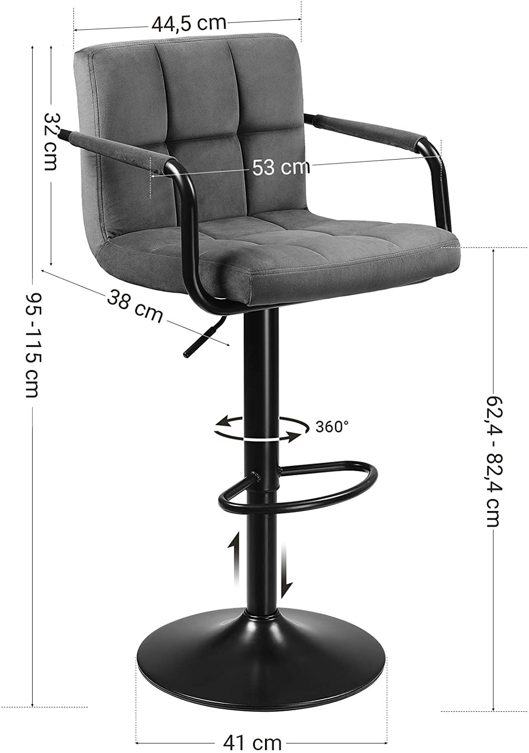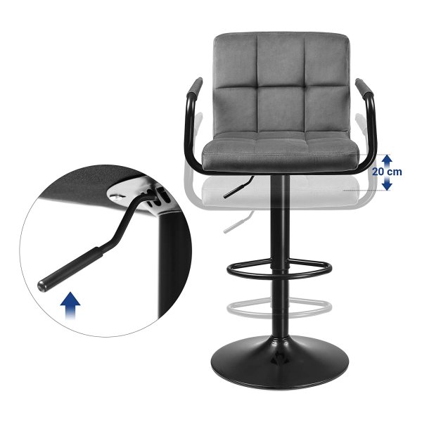 – Zeer comfortabel: wat mag je van deze barkrukken verwachten? Met 6 cm dik, zeer elastisch schuimrubber gevoerd, zacht fluweel bekleed en ondersteund door een brede sokkel (Ø 41 cm), bieden de krukken maximaal comfort