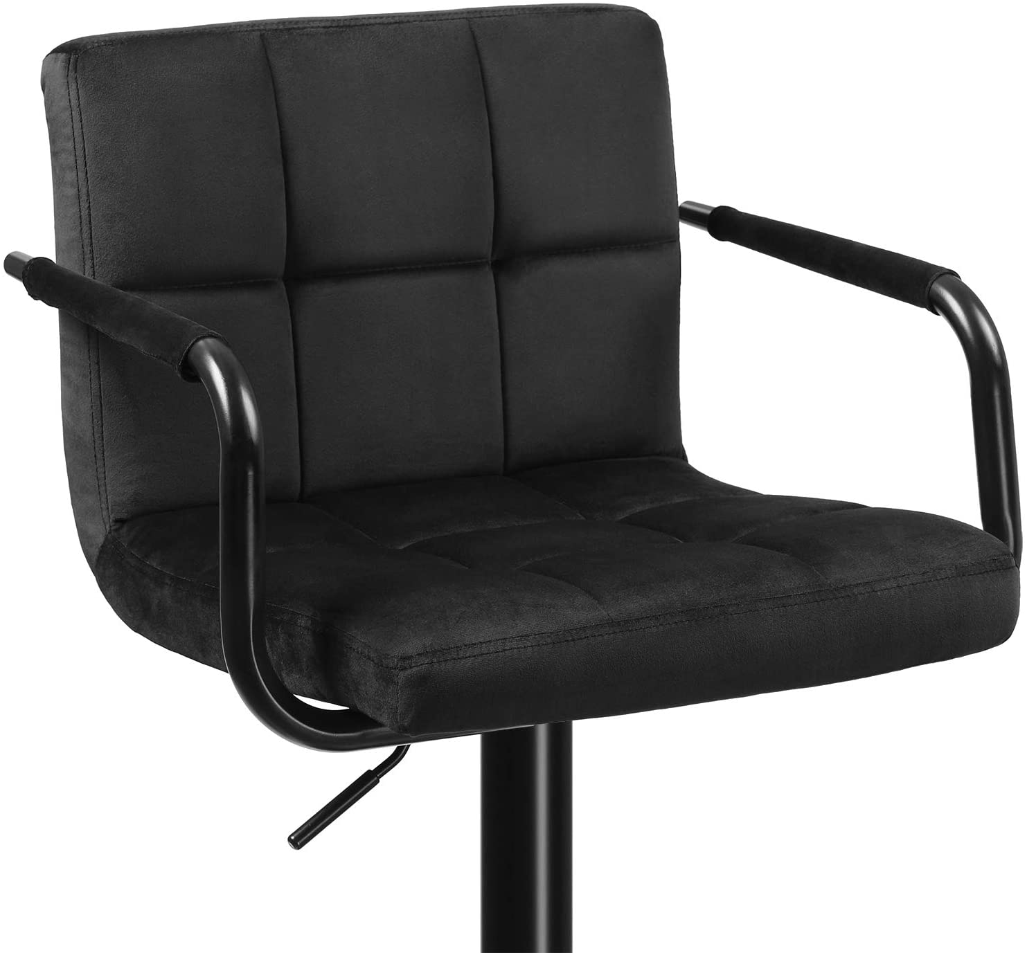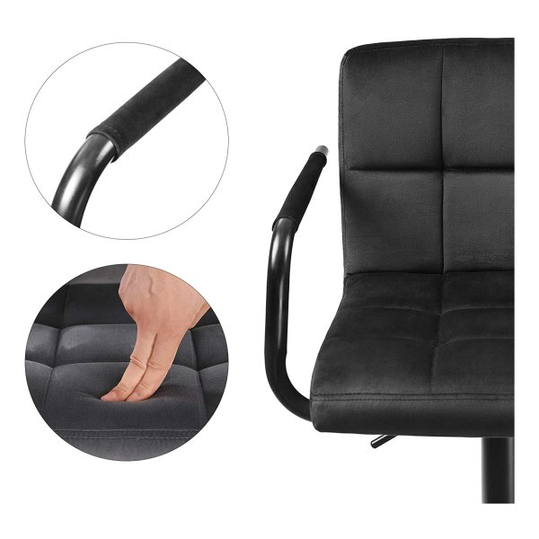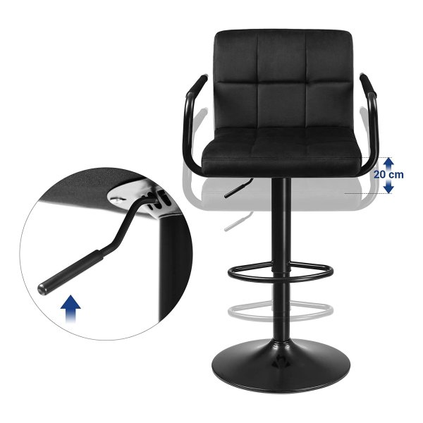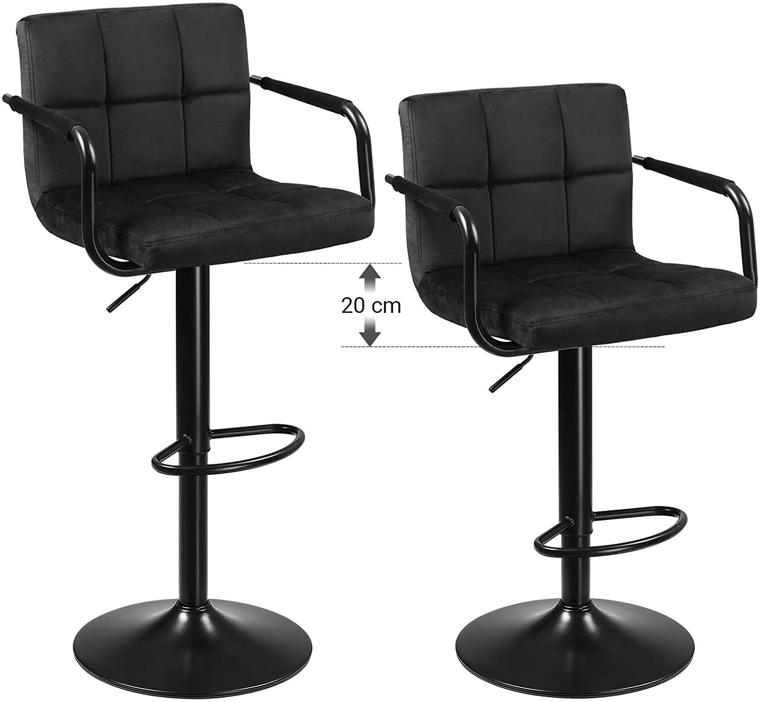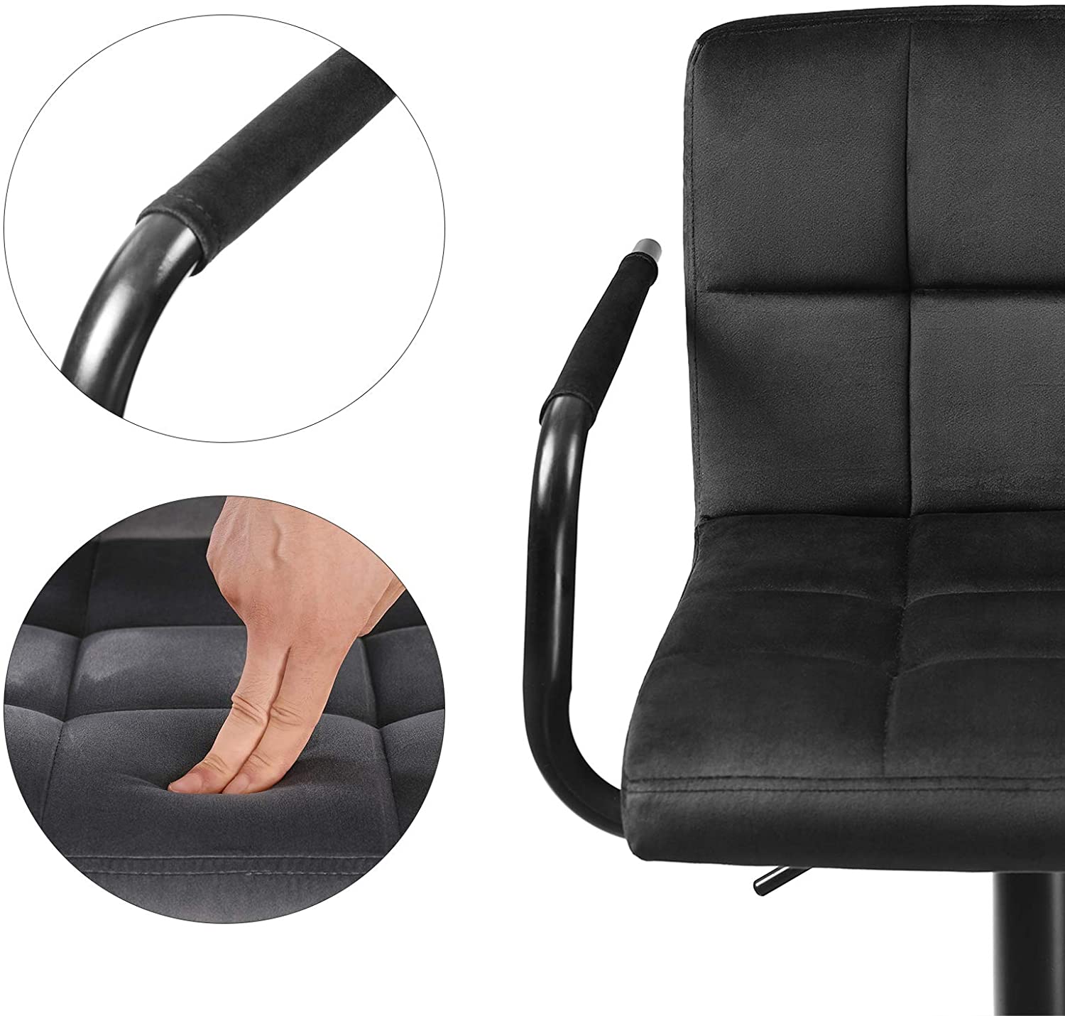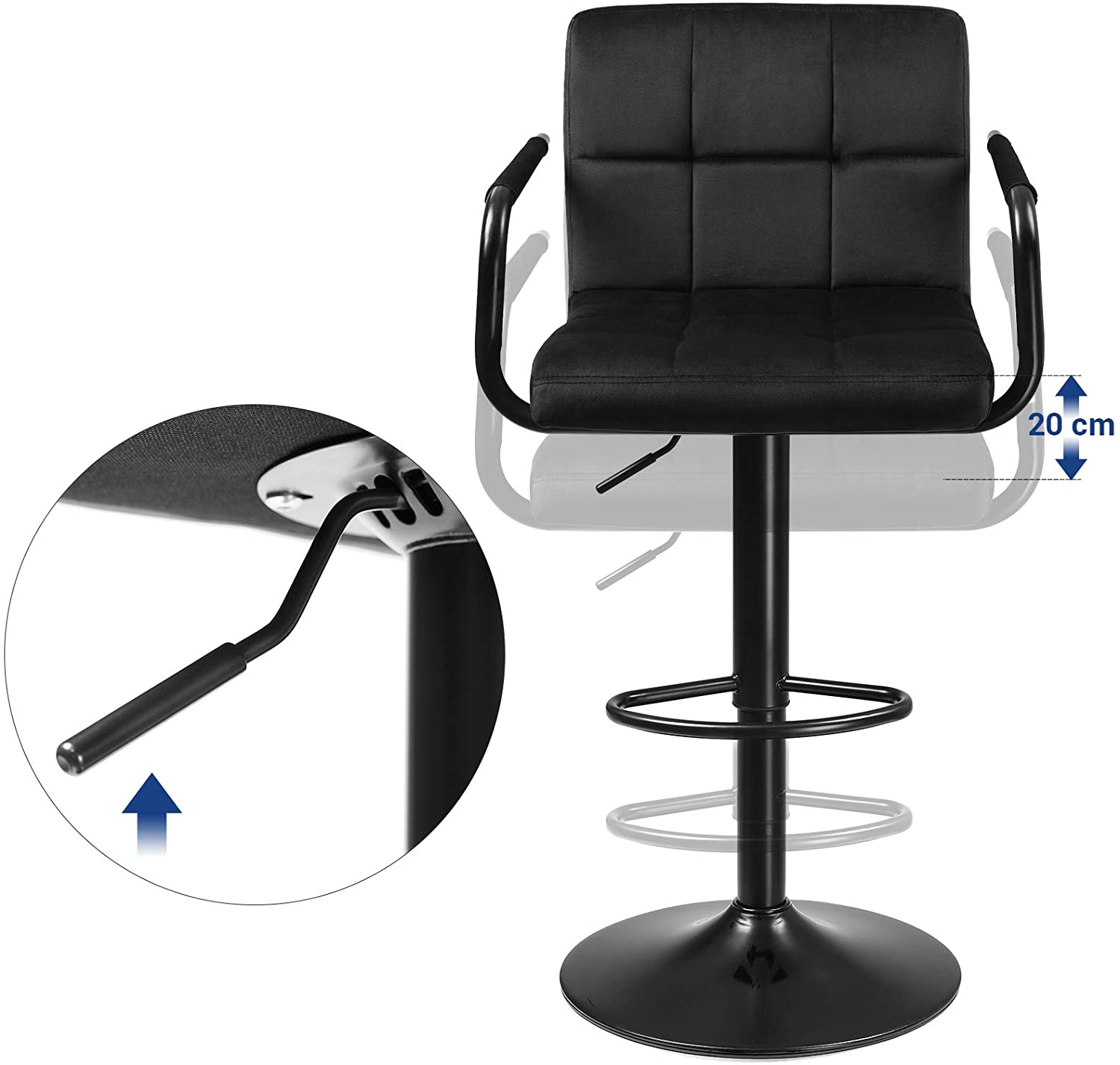 Barkruk, 2-Delige Set Barstoelen, Met Fluwelen Bekleding, İn Hoogte Verstelbaar, Keukenstoelen, Draaistoelen Met Armleuningen, Rugleuning En Voetensteun, Metaal, Zwart