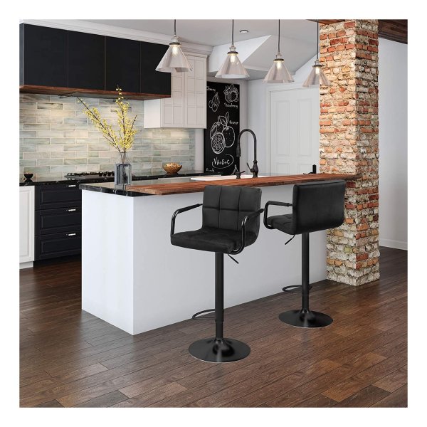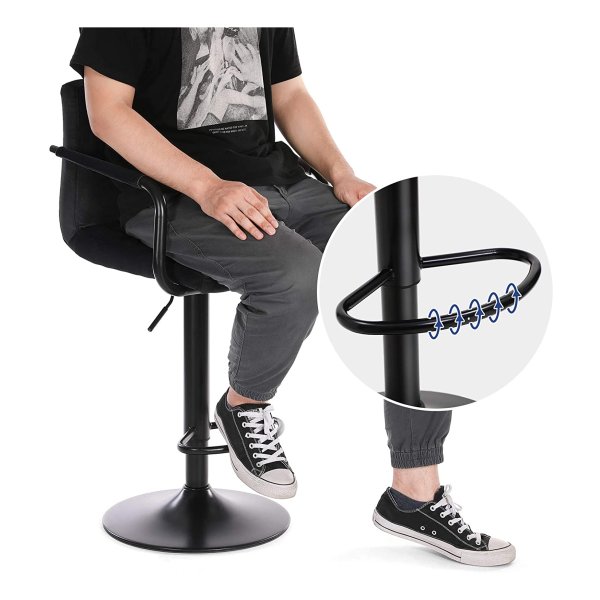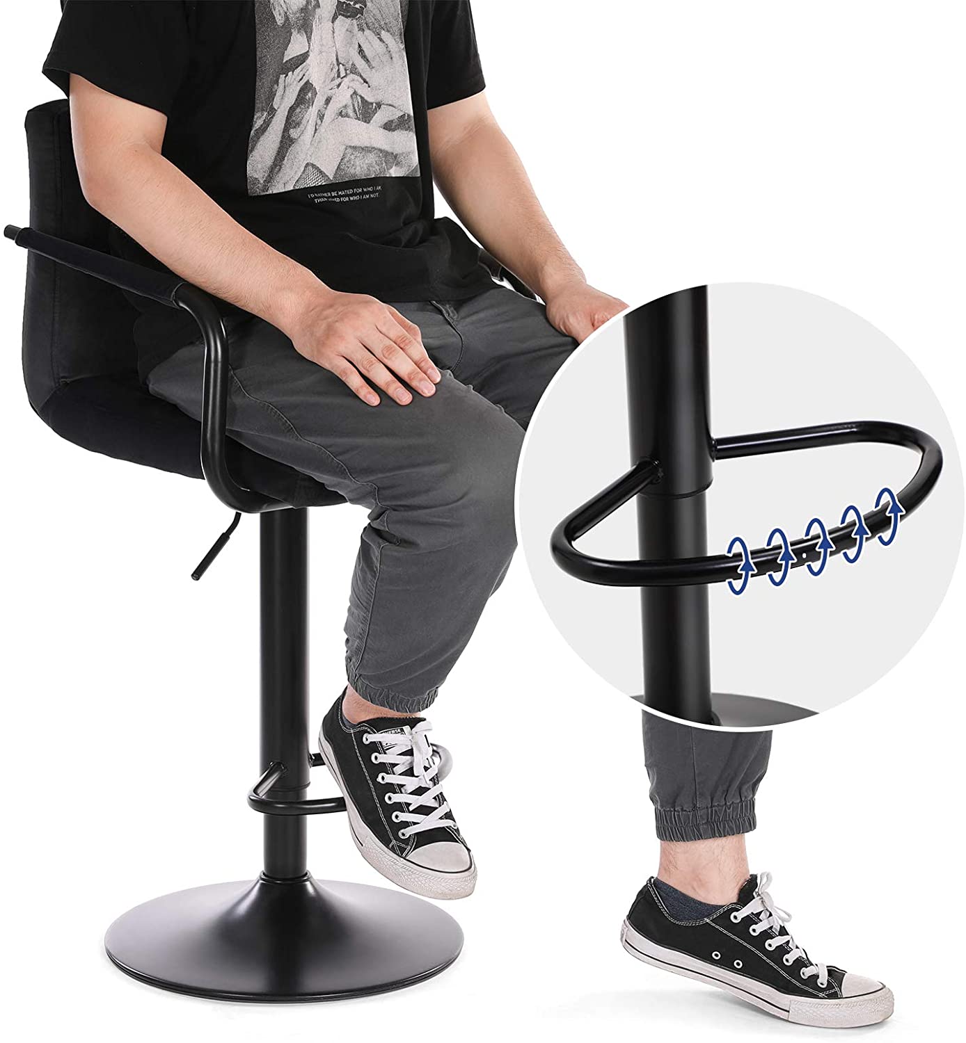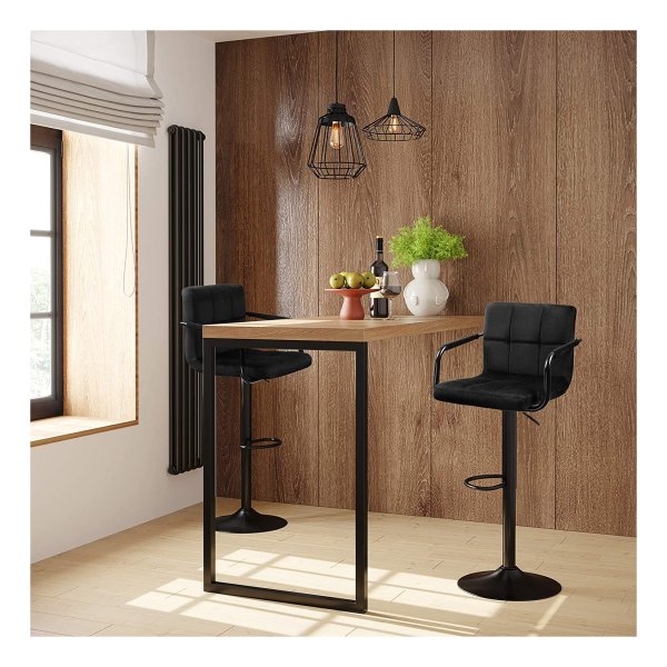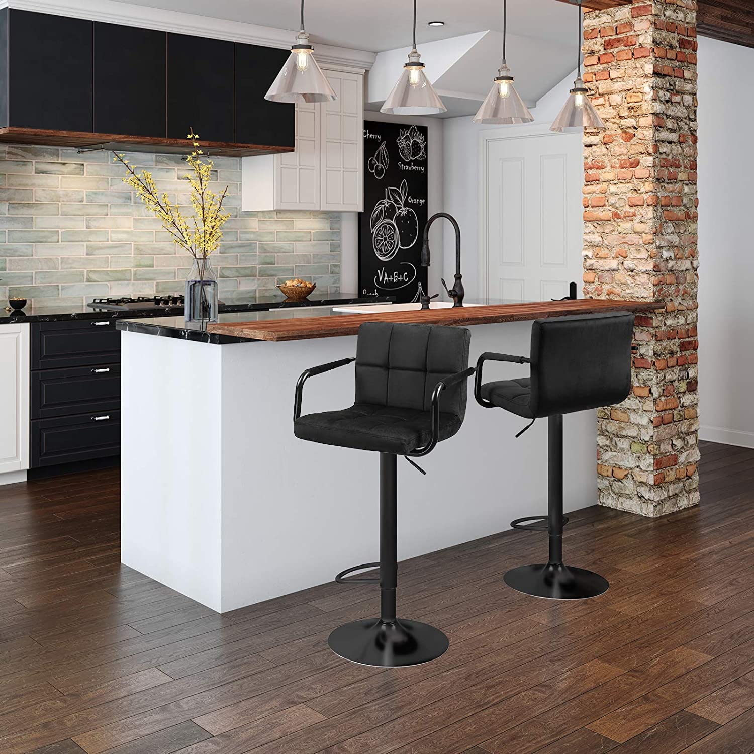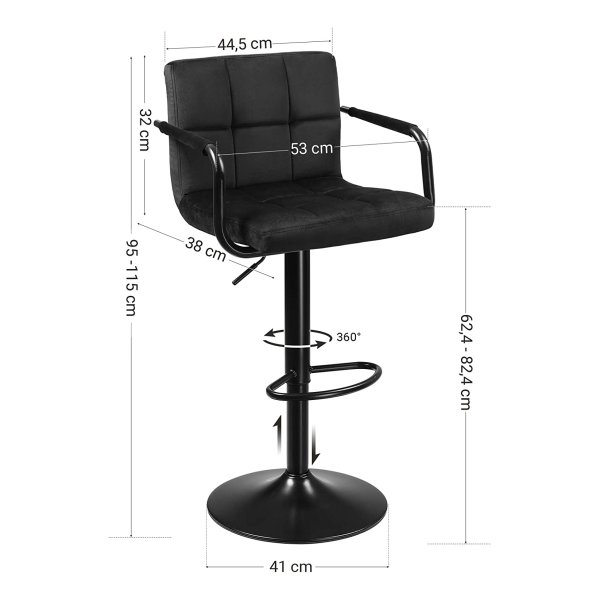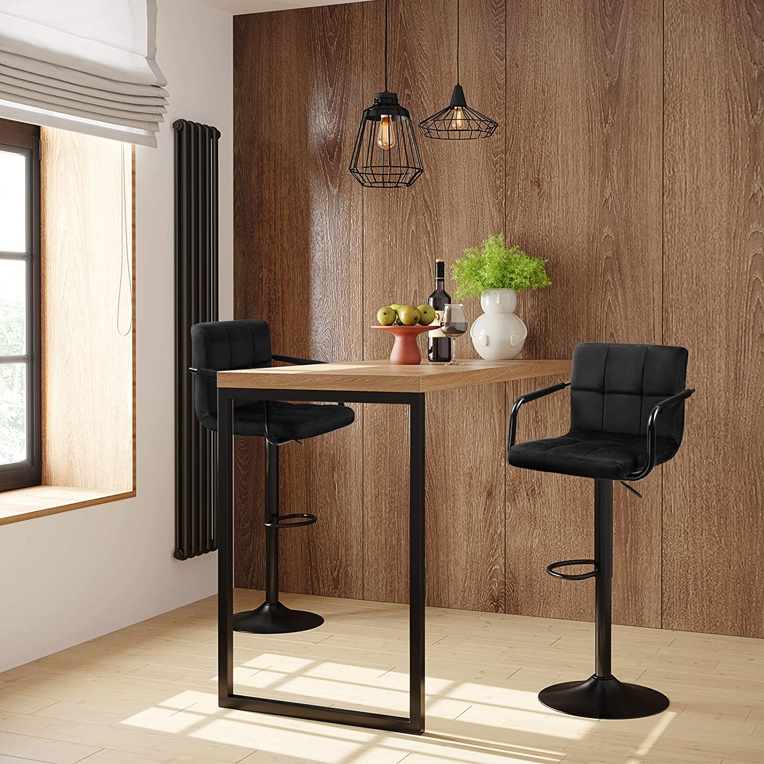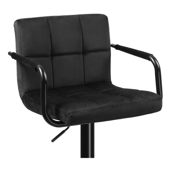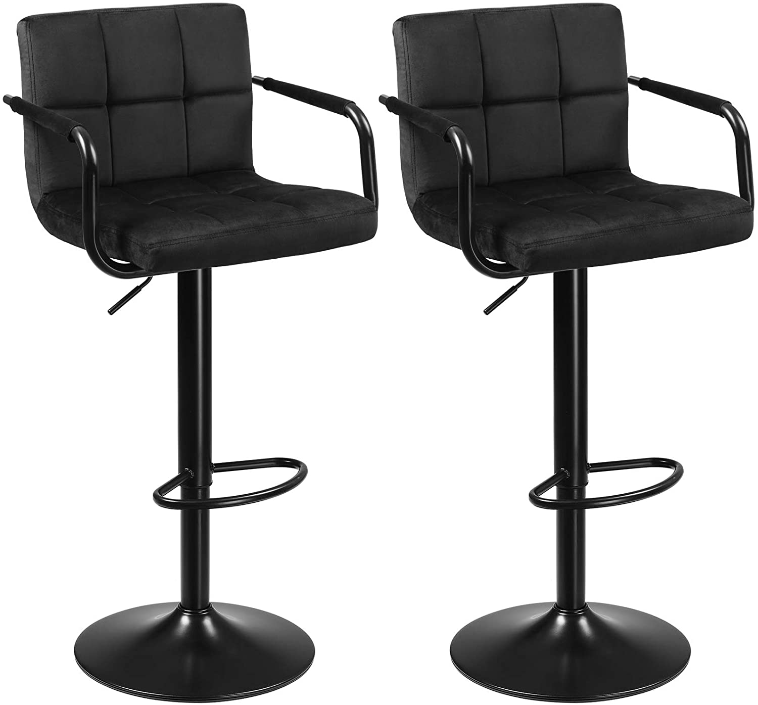 Barkruk, 2-Delige Set Barstoelen, Met Fluwelen Bekleding, İn Hoogte Verstelbaar, Keukenstoelen, Draaistoelen Met Armleuningen, Rugleuning En Voetensteun, Metaal, Zwart