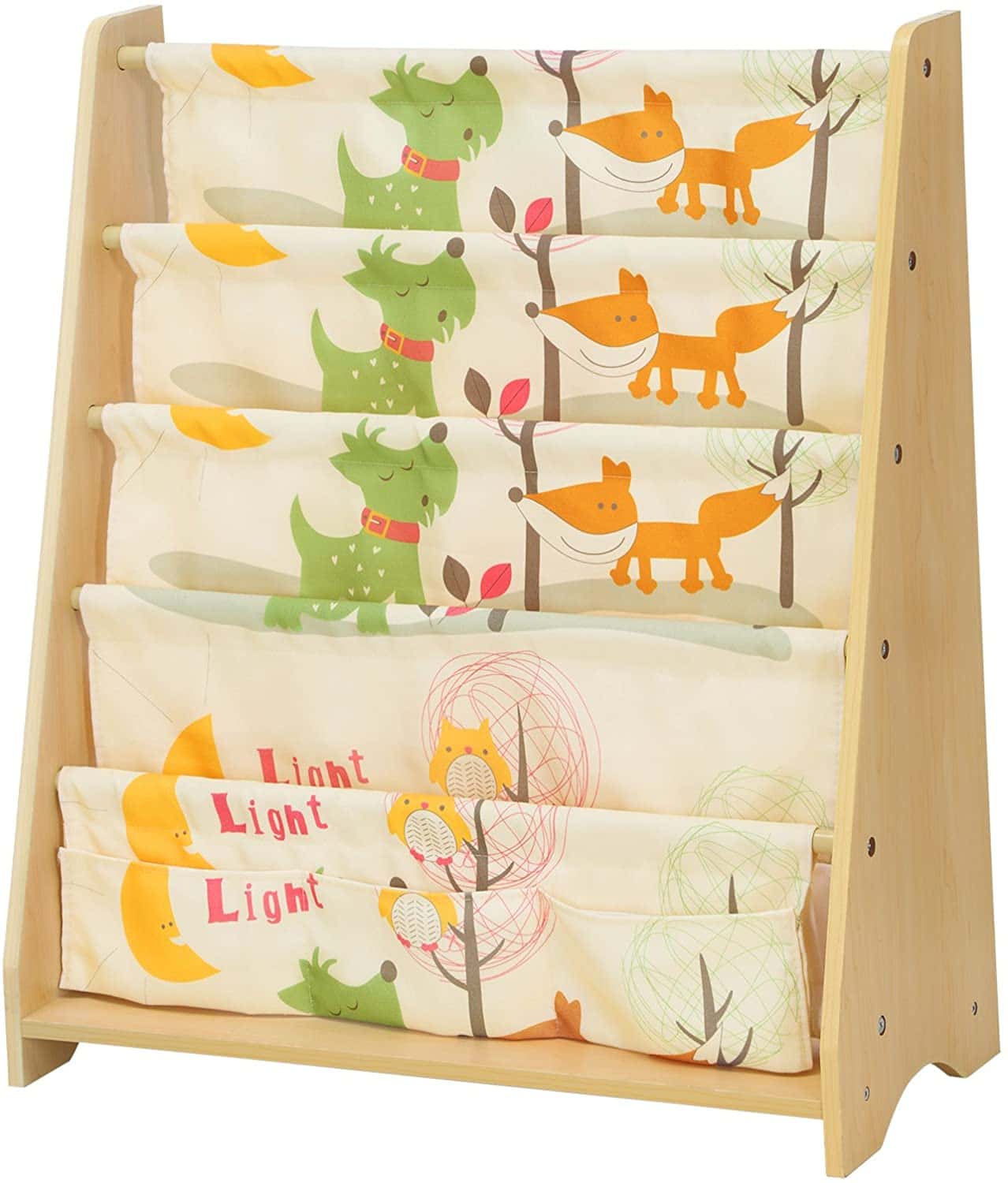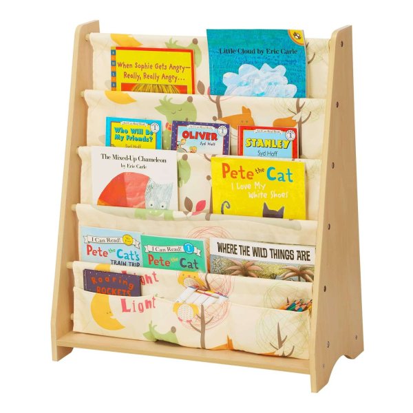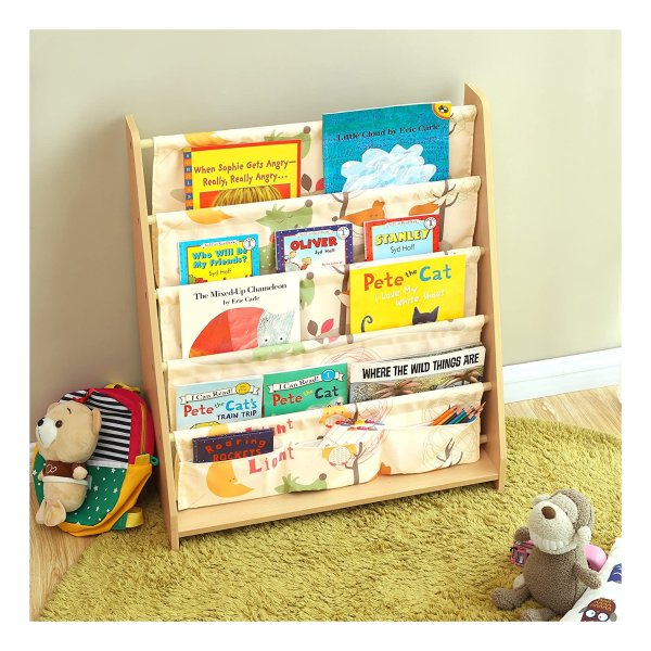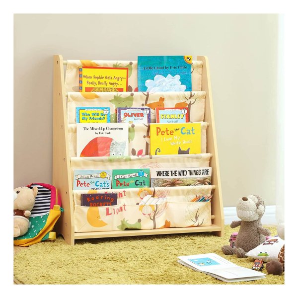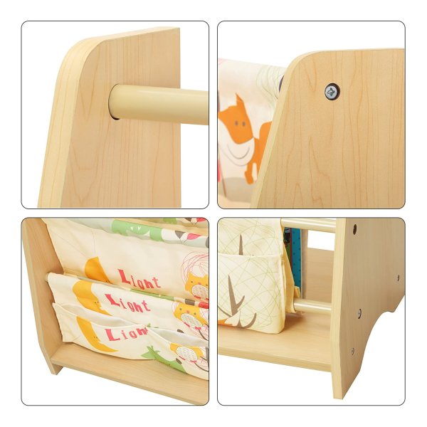 Gemaakt van MDF-platen en polyesterweefsel, gemakkelijk te reinigen en zeer robuust. Zijn grote onderlegger garandeert de stabiliteit. Gladde, afgeronde randen voorkomen dat kinderen zich verwonden, aan huid of kleding stoten of krassen. De meegeleverde kantelbeveiliging voor bevestiging van het rek aan de muur zorgt voor extra stabiliteit. Dit mooie boekenrek siert perfect de kinderkamer, het kan ook de organisatie van je kinderen en hun leesvaardigheden bevorderen.