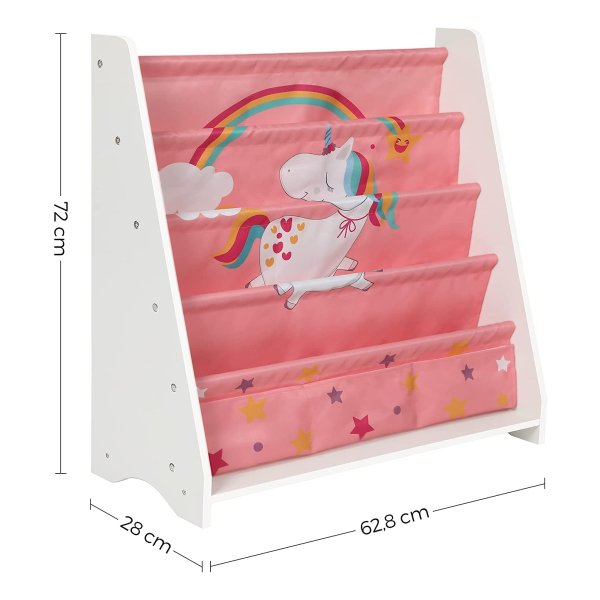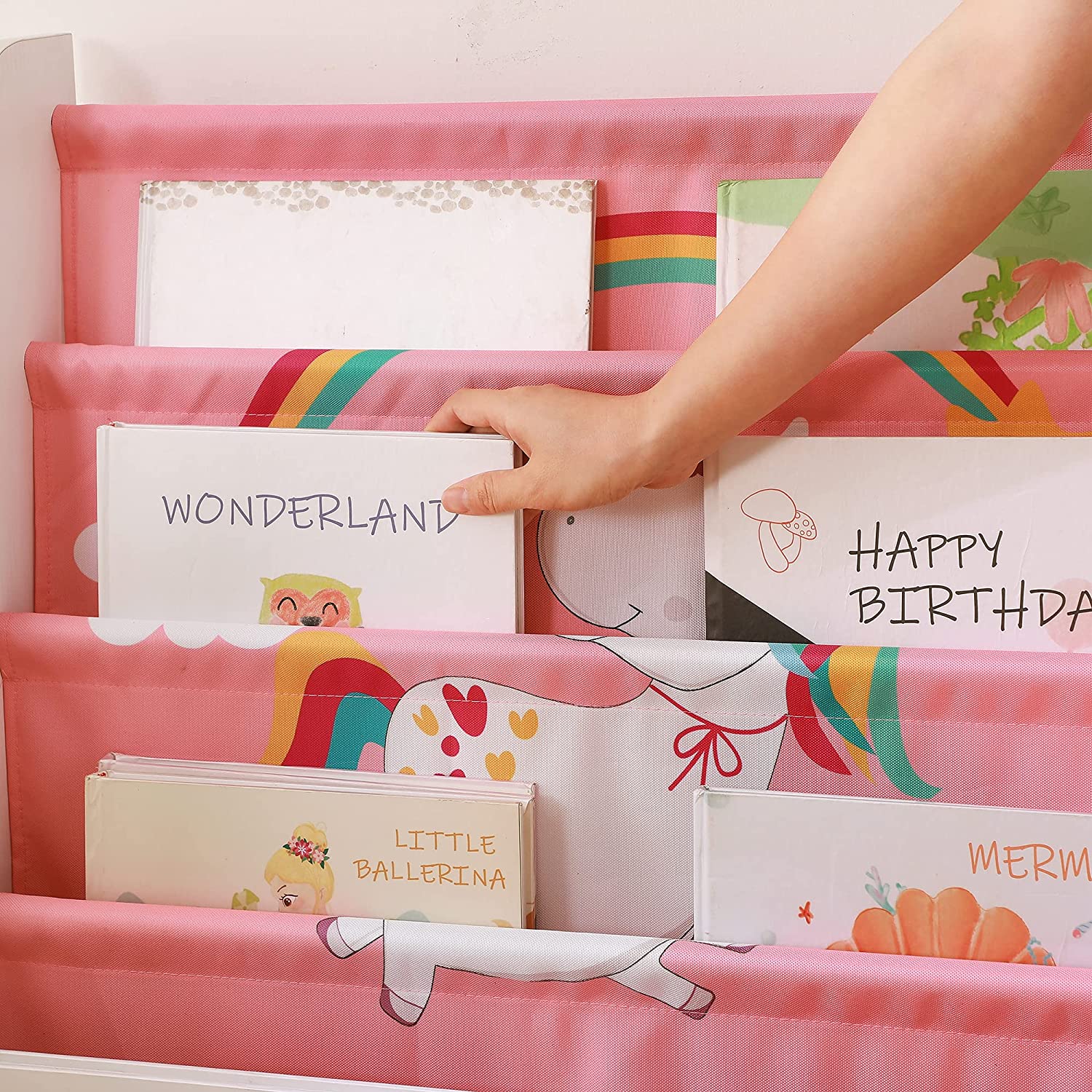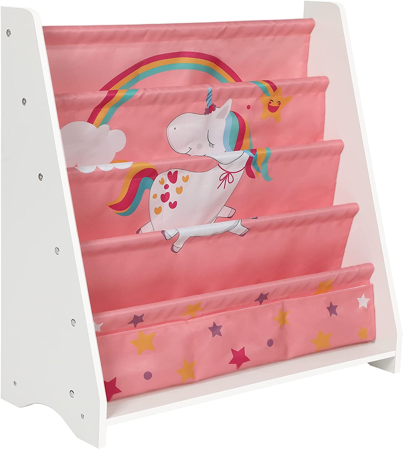Voor goede organisatiegewoonten: regenbogen en eenhoorns dompelen uw kinderen onder in een sprookjesachtige wereld, wat hen uiteindelijk inspireert om de boeken die door de kamer verspreid zijn te ordenen
