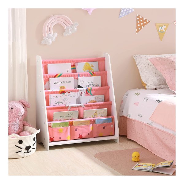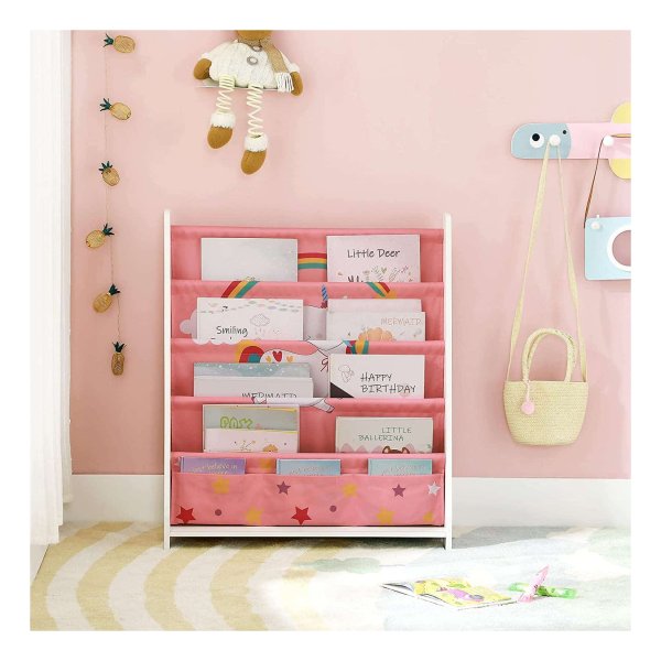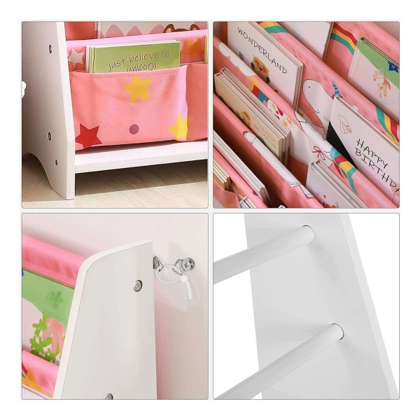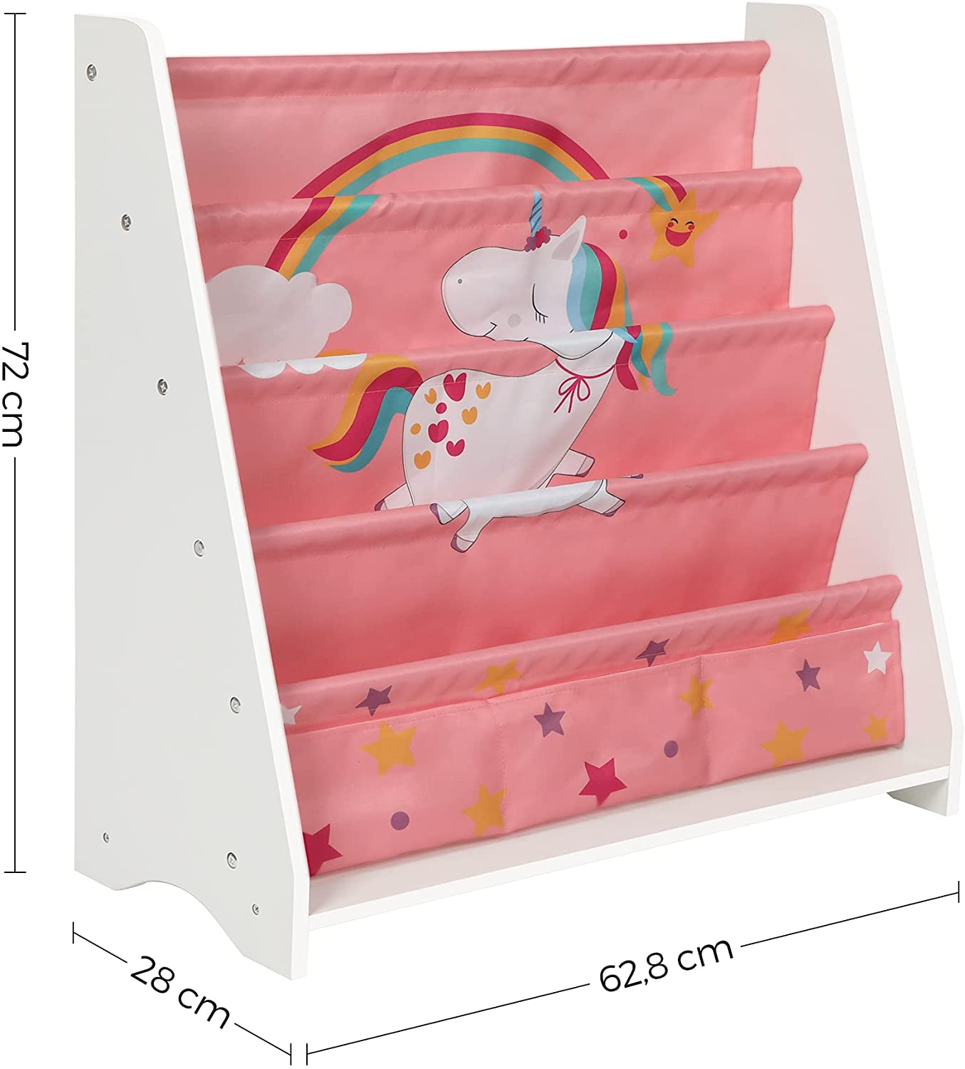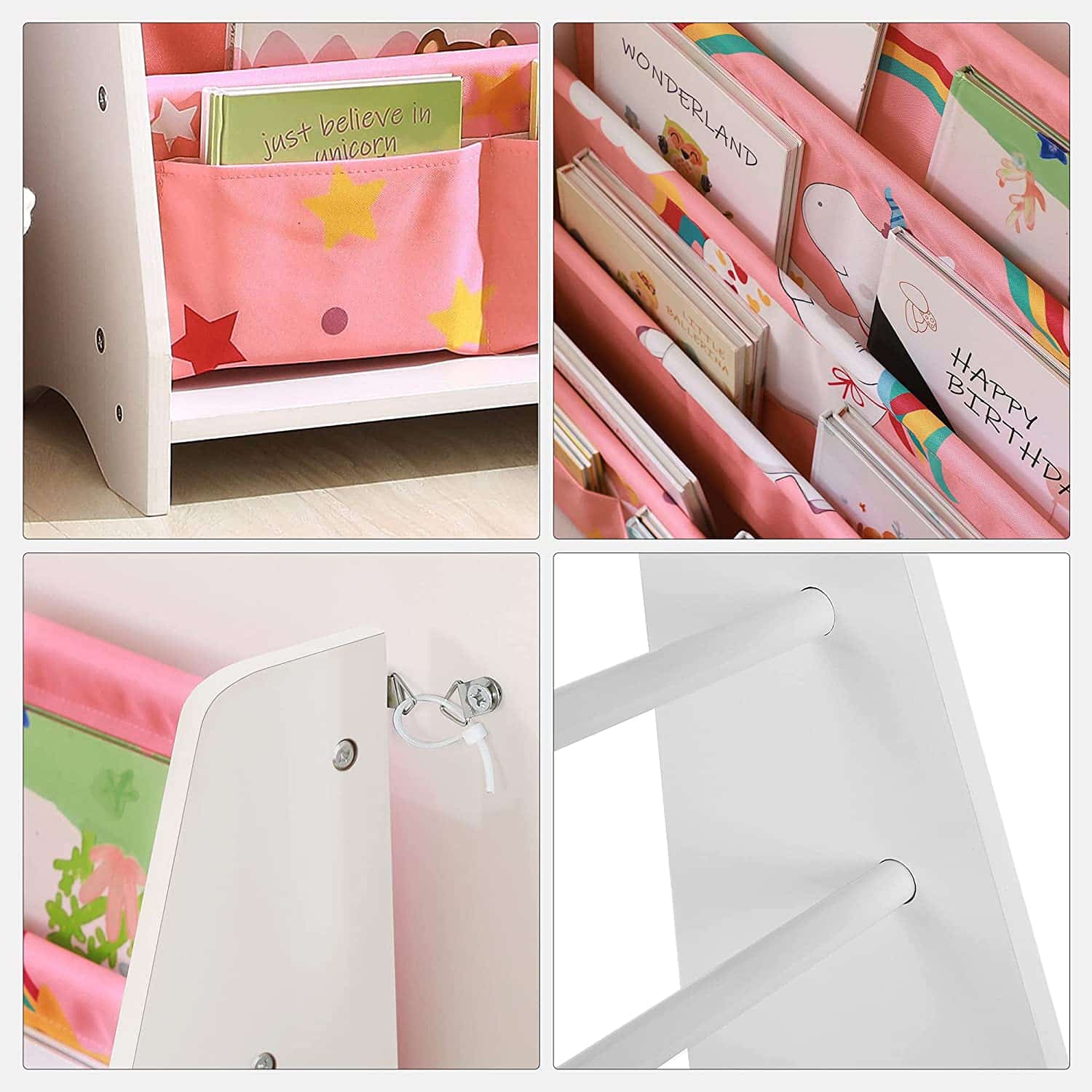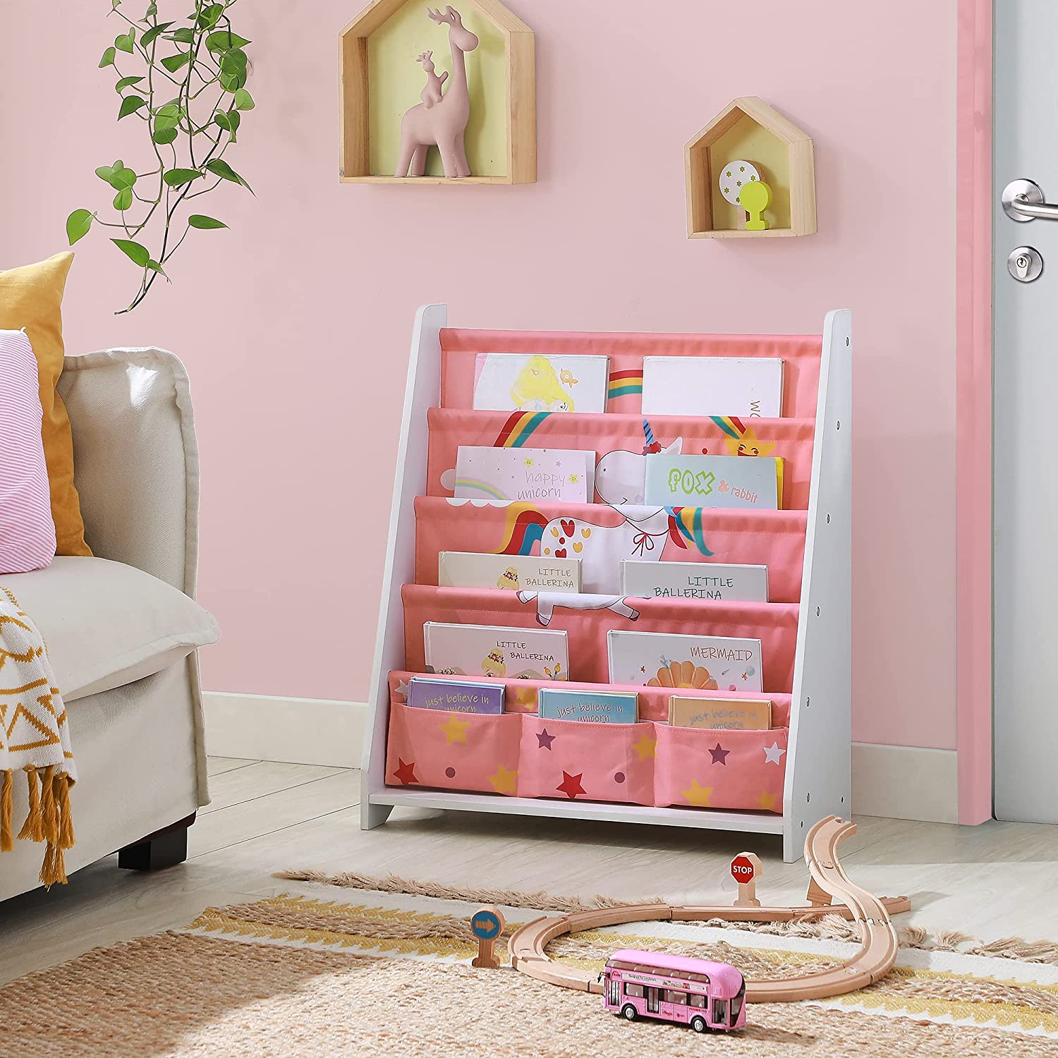 Boekenplank Voor Kinderen, Kinderkamerplank, Met 5 Niveaus, Speelgoedorganizer, Met Kantelbeveiliging, Voor Kinderkamers, Speelkamers, Scholen, Kleuterscholen, 62,8 X 28 X 72 Cm, Wit-Roze