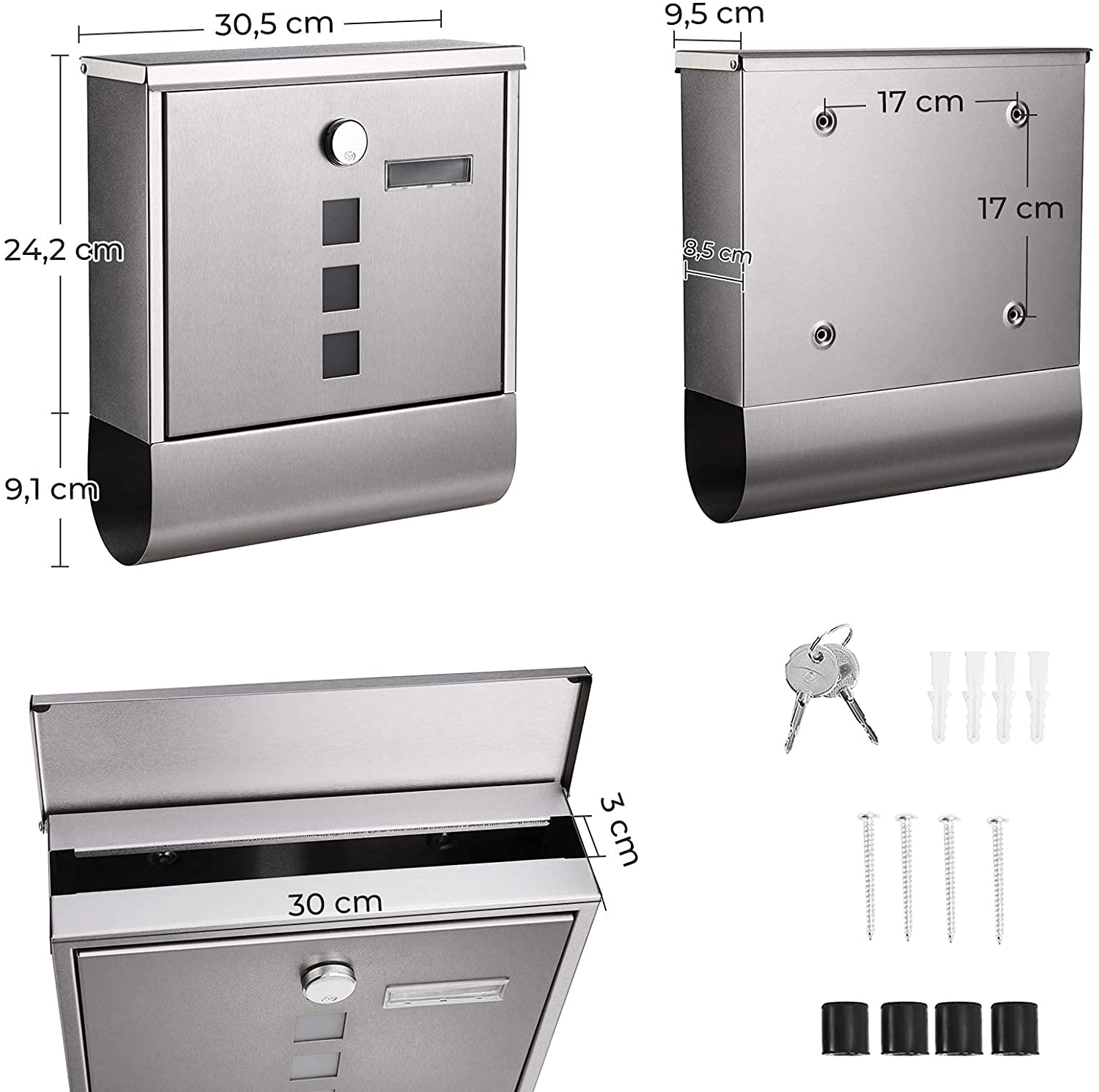 Een toevluchtplaats voor je brieven, kranten en tijdschriften: Plaats je brieven gewoon altijd op de grond voor je huisdeur? Dit is vooral op regendagen ergerlijk. Bovendien kan je post ook eenvoudig zo verdwijnen. Deze brievenbus van komt u te hulp en biedt uw brieven, kranten en tijdschriften een kleine schuil. Bestaat uit roestvrij staal, beschermt hij de drukproducten tegen weersinvloeden en heeft bovendien een lange gebruiksduur.