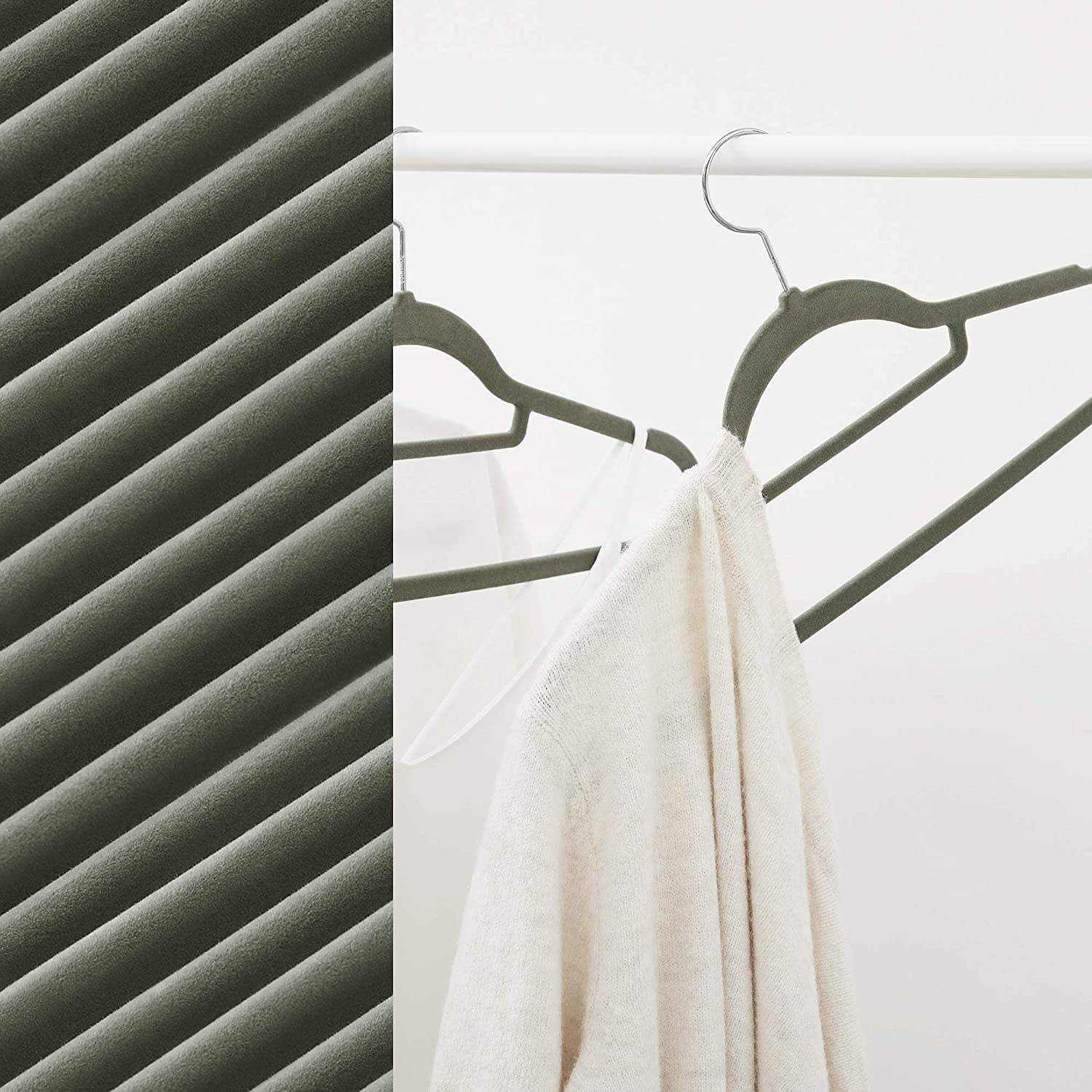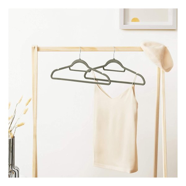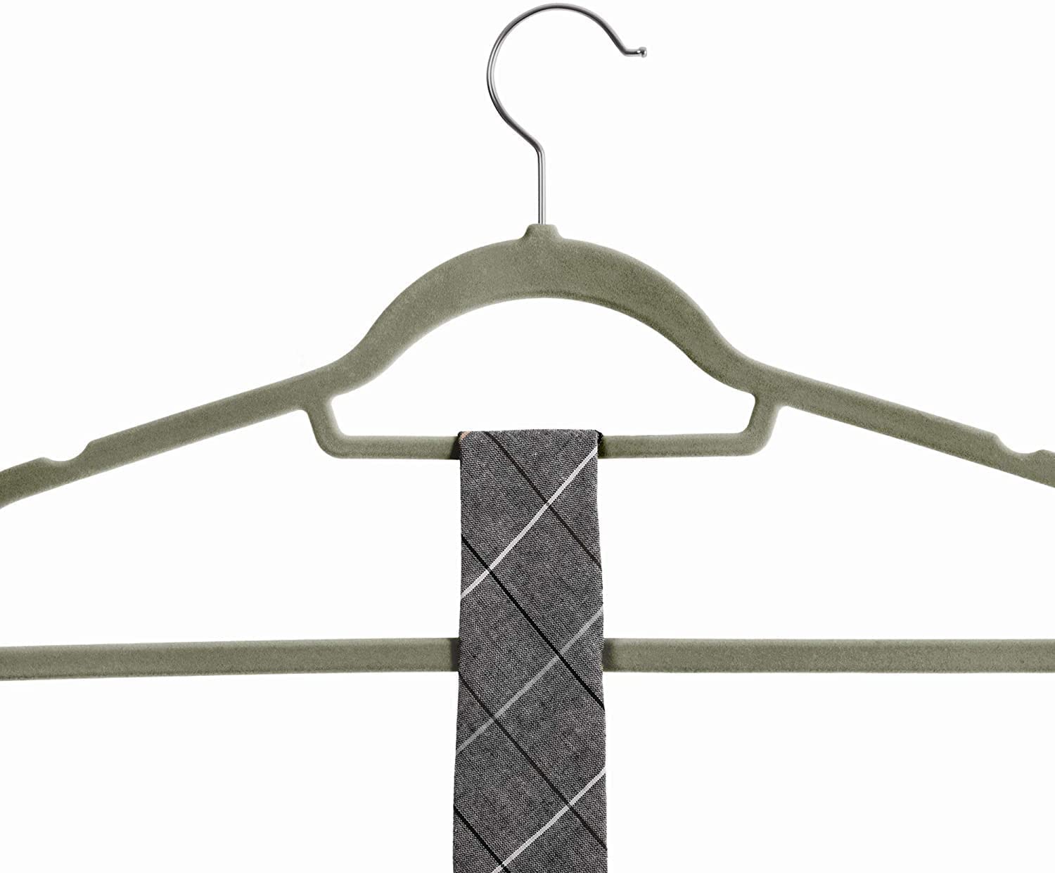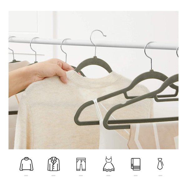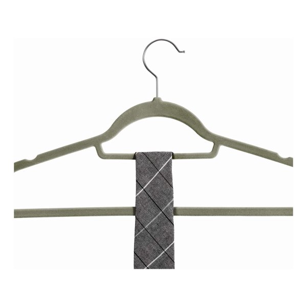 Kledinghangers, fluweel 0,5 cm dik niet-slipoppervlak met twee inkepingen, 360 graden roteerbare haak, grijs, pak van 50