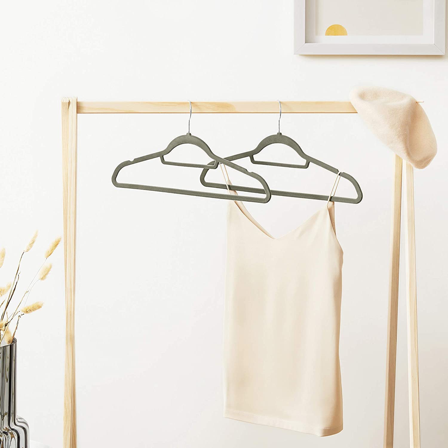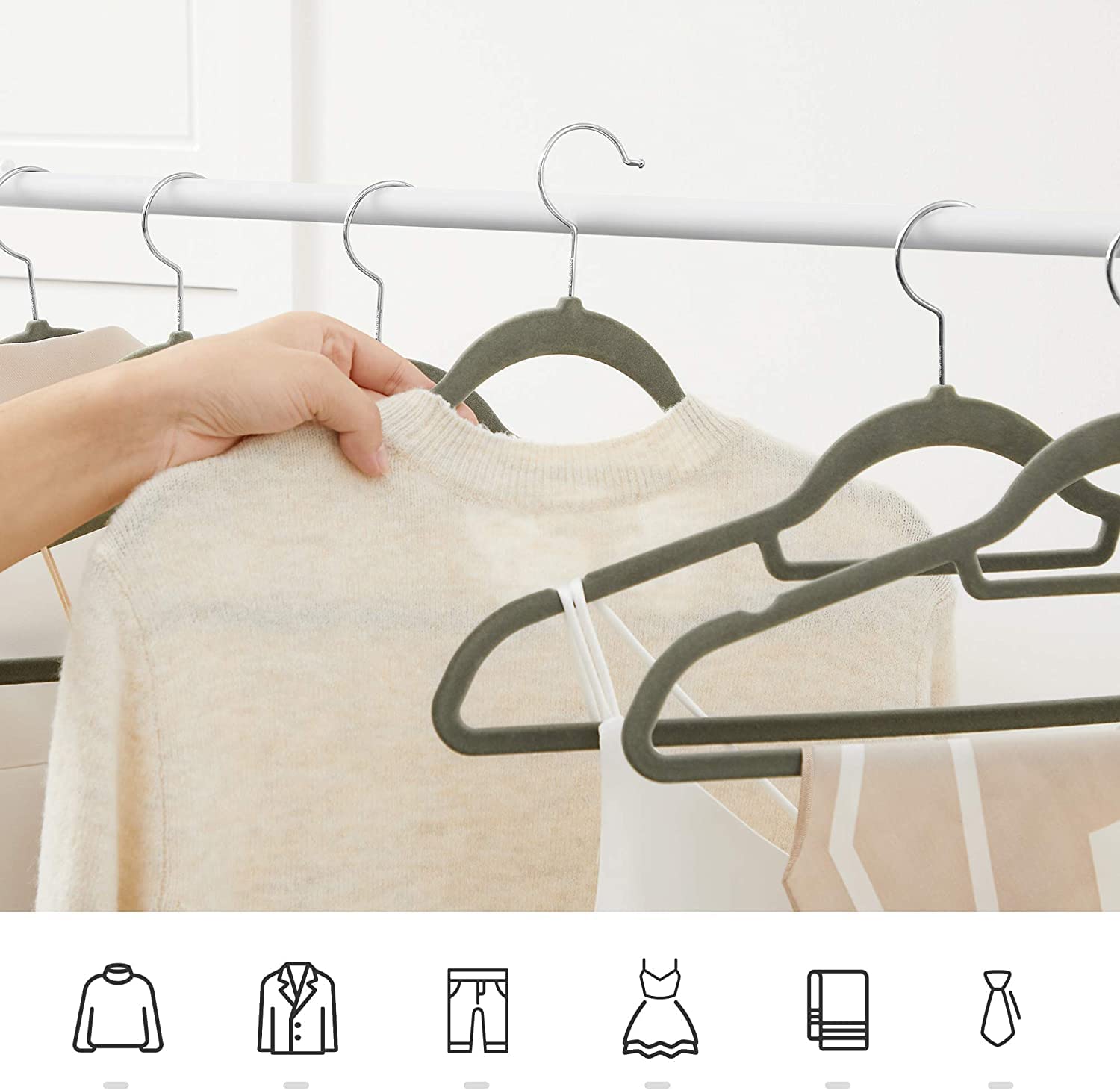 Bullet Point 1 | Non-slip: hoogwaardige kleerhanger met een fluwelen gecoat oppervlak dat de wrijvingskracht tussen kleerhanger en kleding verhoogt.Dus je kleding zal niet langer van de hanger glijden. |