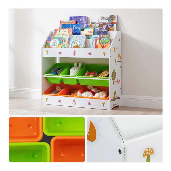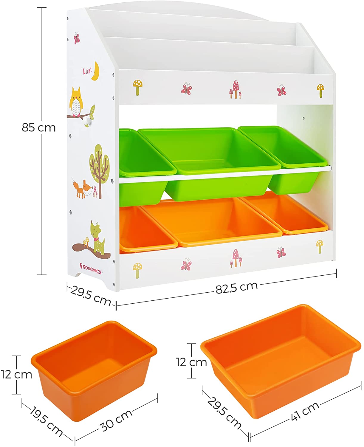 Tags: bijzettafel wit, boekenrek met 3 verdiepingen en 6 uitneembare containers voor kinderkamer, GKR44WTV1, kleuterschool, meerkleurig, Opbergkast voor kinderen