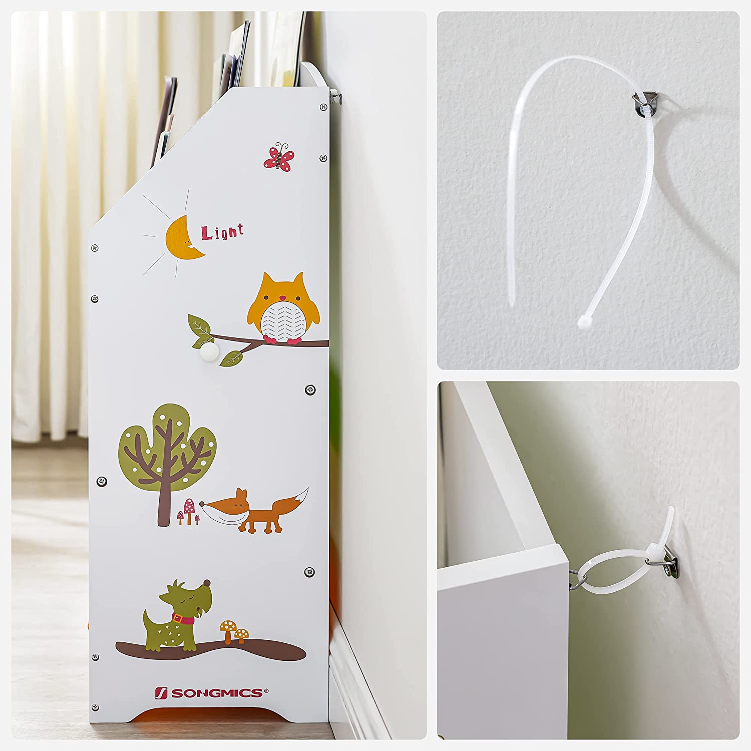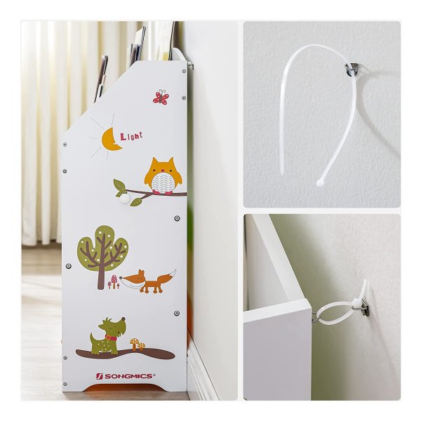 - Decoratief: Het mooie rek met zijn heldere kleuren trekt de kinderen aan. Dieren, bomen, vogels en anderen brengen enthousiasme in het leven en denken van kinderen