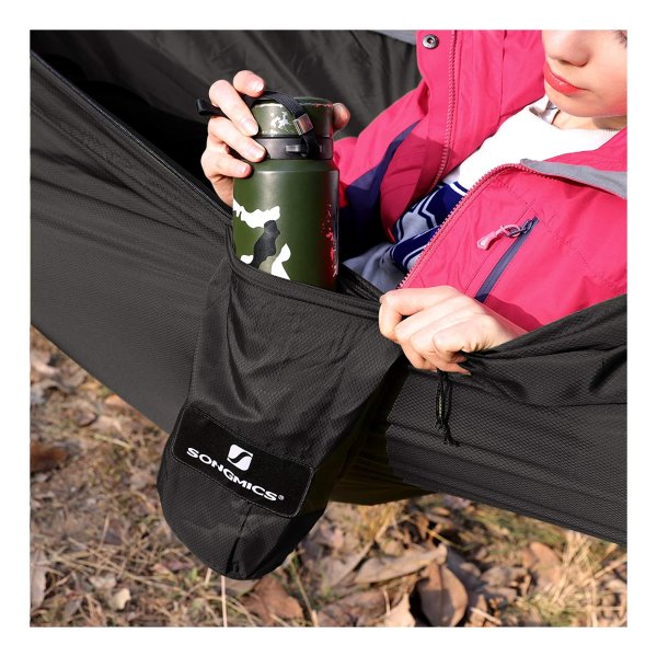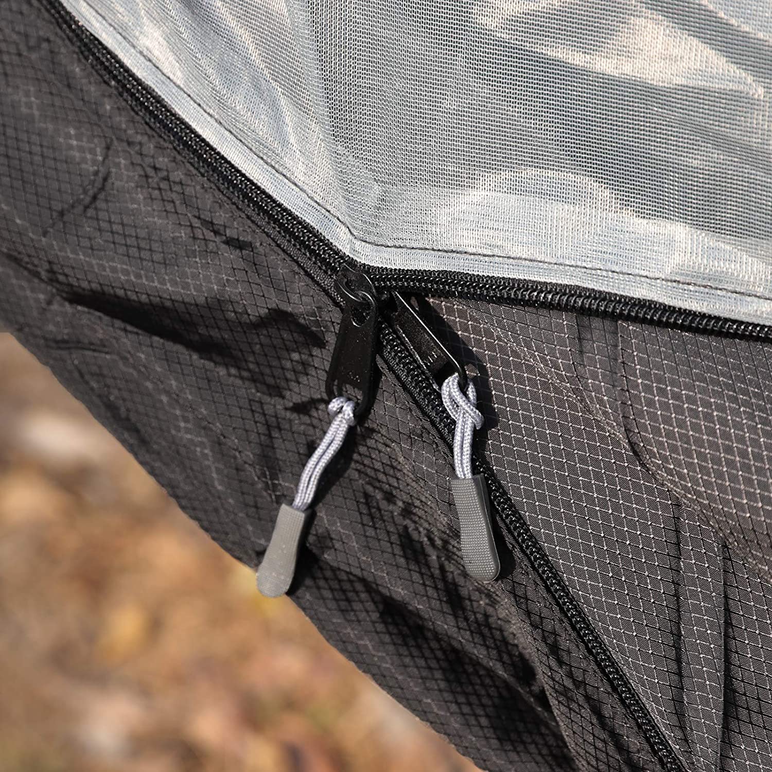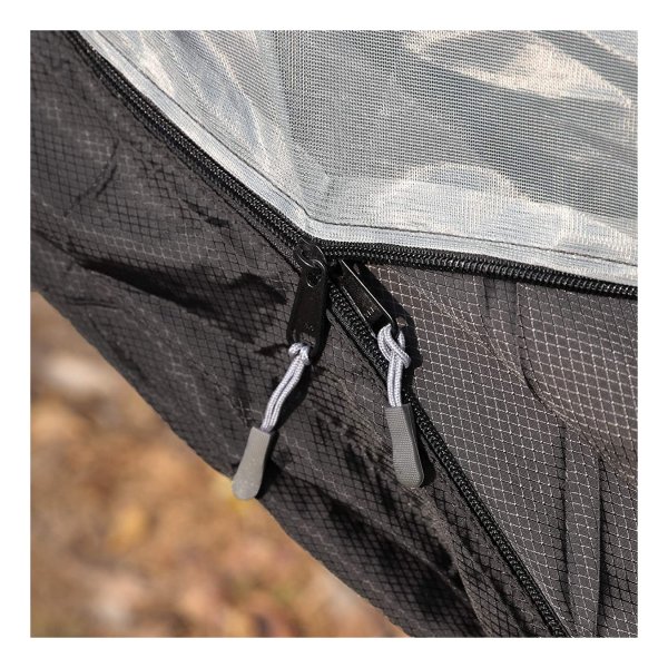 De hoogwaardige ritssluiting maakt het mogelijk om gemakkelijk in de hangmat aan en uit te stappen; bovendien glijden de ritsen soepel.