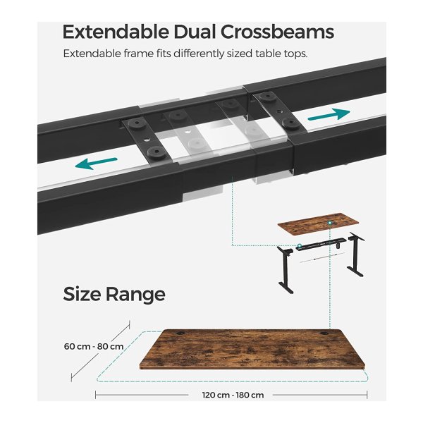 Ruim werkoppervlak: 120 x 60 cm groot tafelblad biedt voldoende ruimte voor 2 monitoren of laptops en tegelijkertijd voor andere kantoorartikelen, is een ideale werkbegeleider